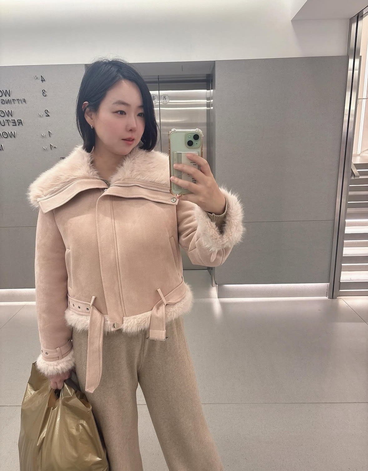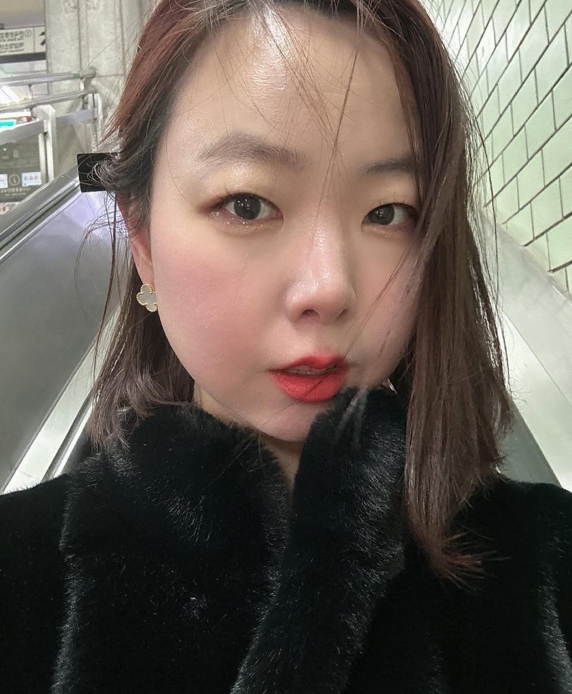 · 아우터 : 핑크 무스탕