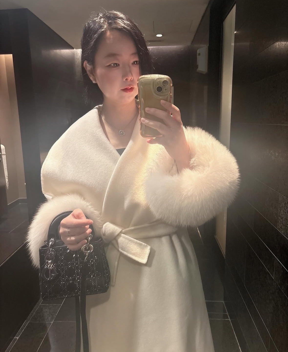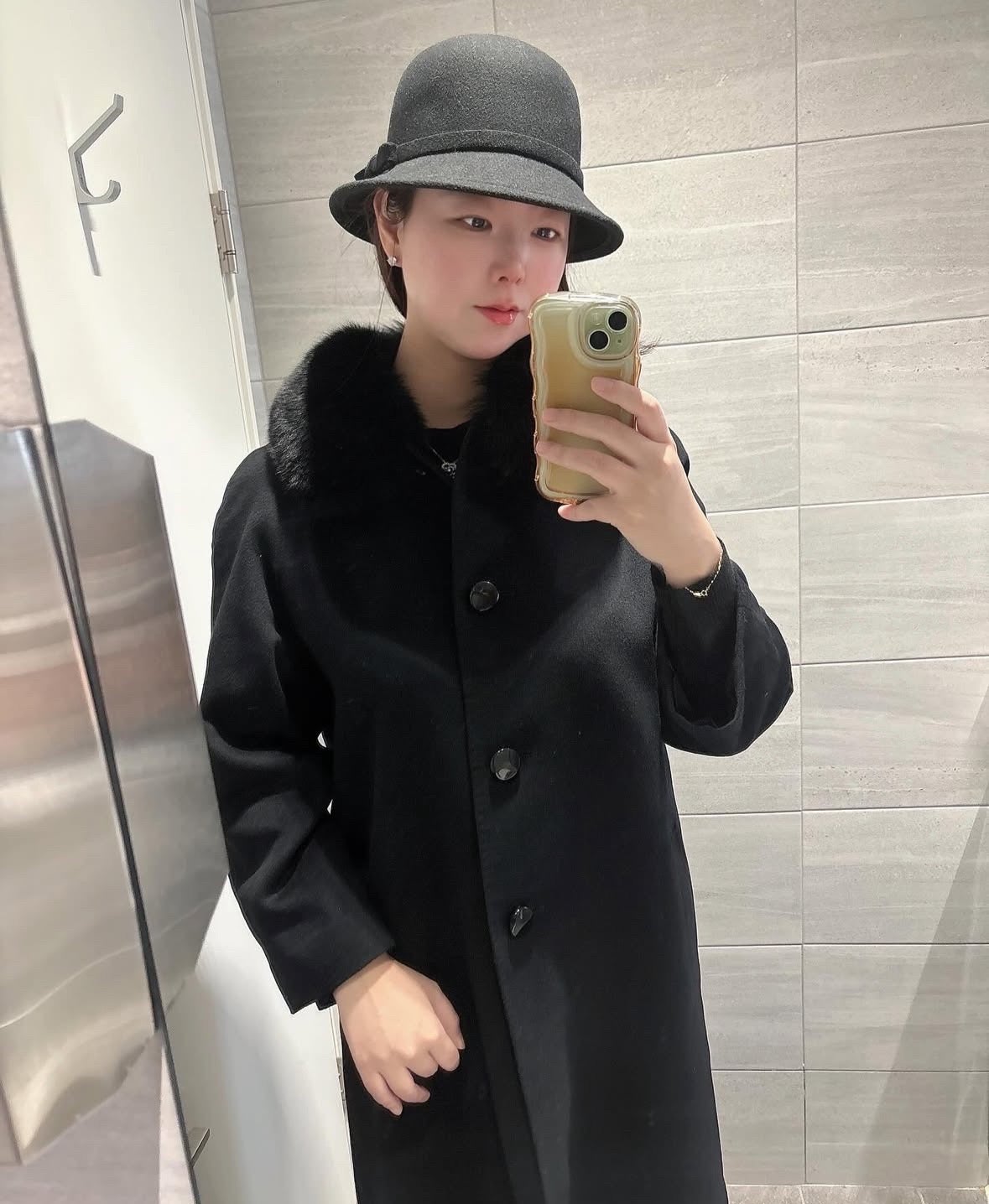 · 아우터 : 캐시미어 100 폭스퍼 블랙 롱코트