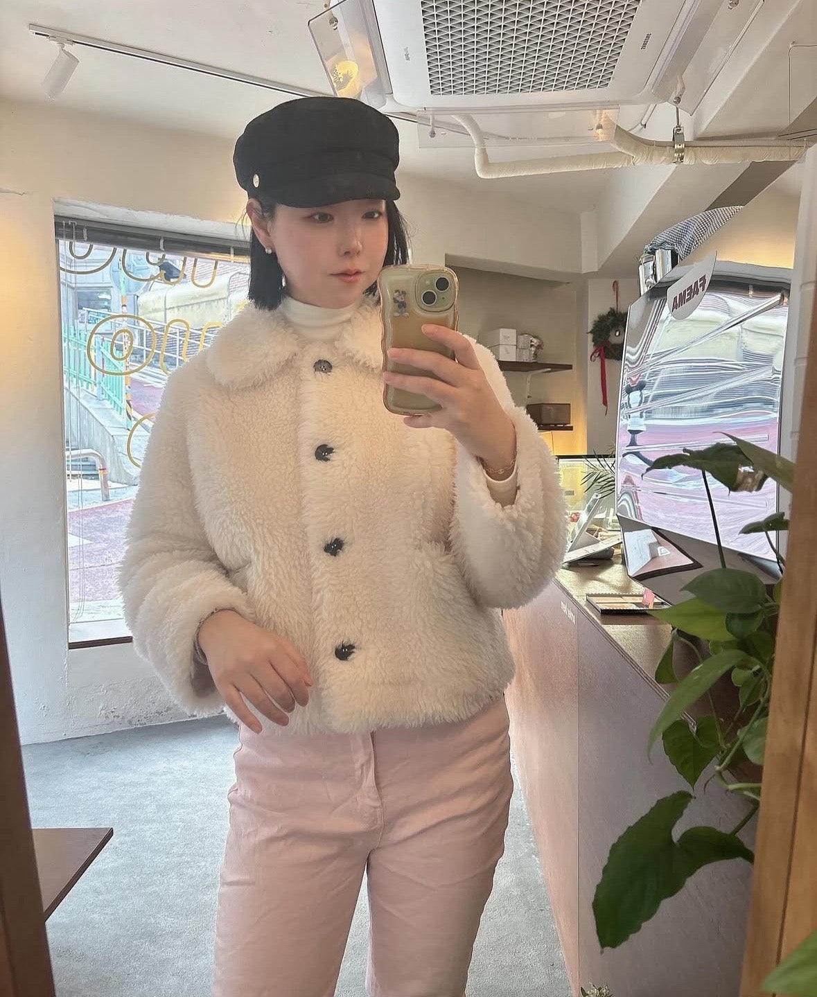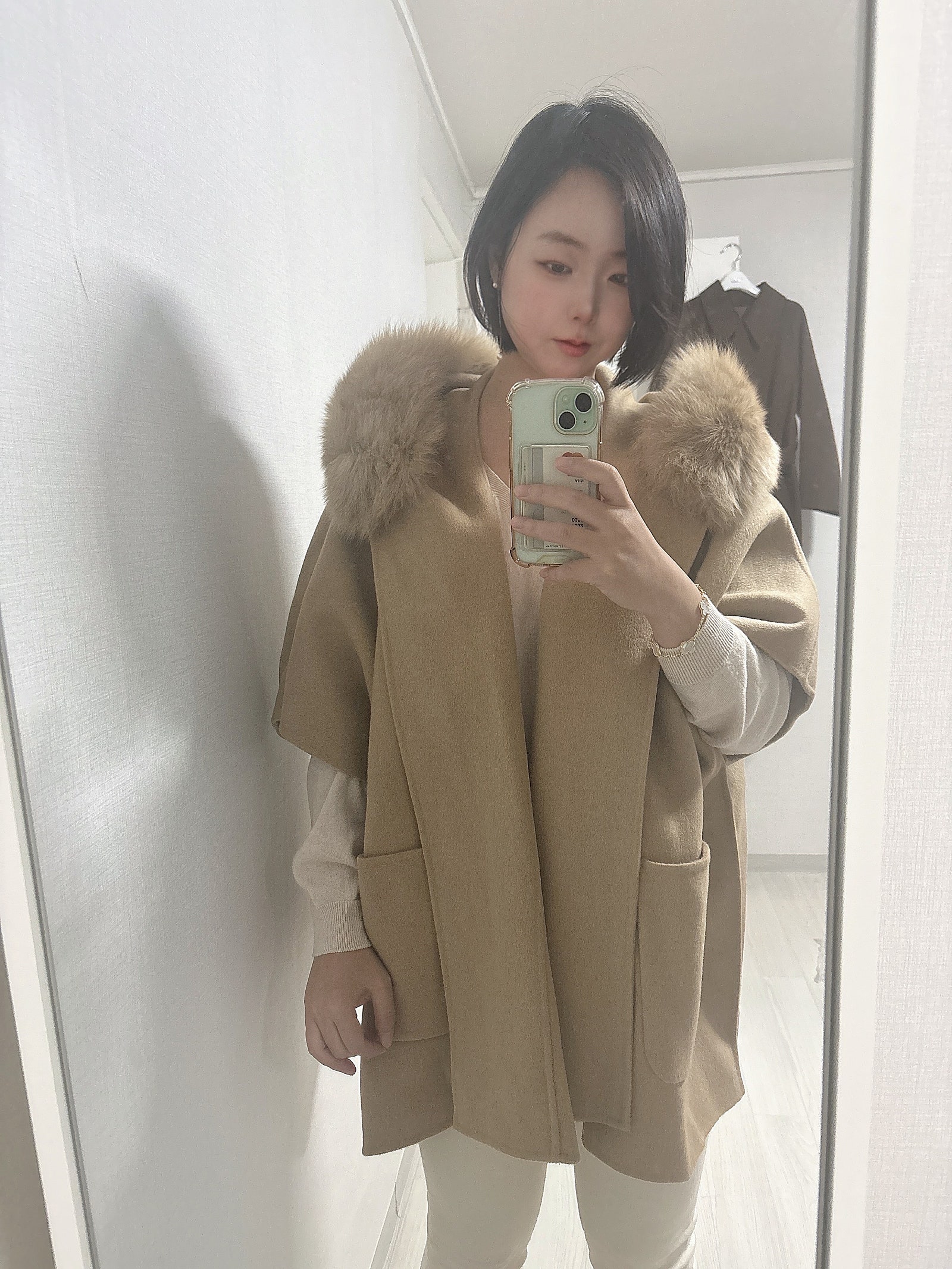 폭스퍼 울 케이프 코트와 뽀글이 브라운 자켓까지.