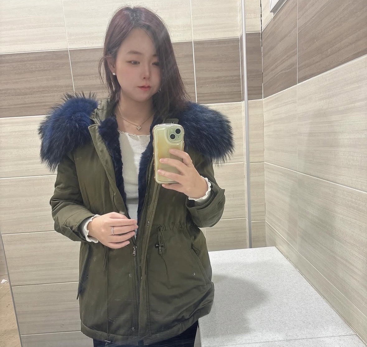 · 아우터 : 폭스퍼에 조끼 안감은 토끼털 카키 야상 패딩