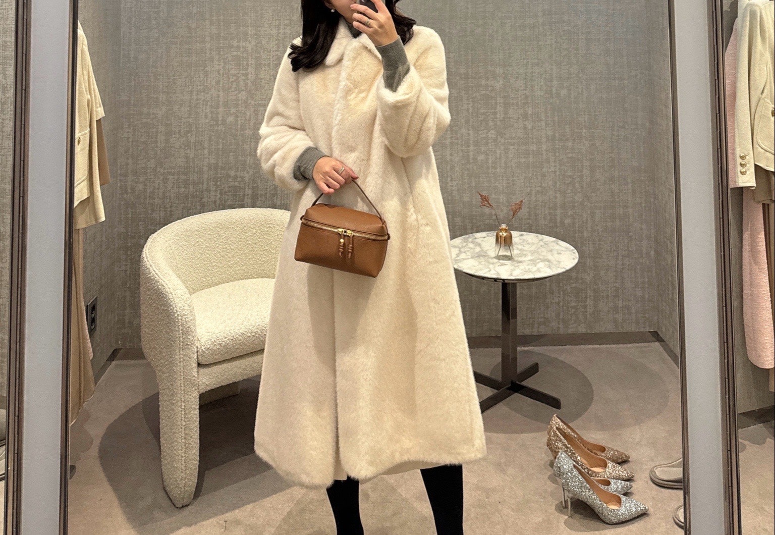 롱기장 밍크 코트는 리얼은 아니고 에코 밍크예요.