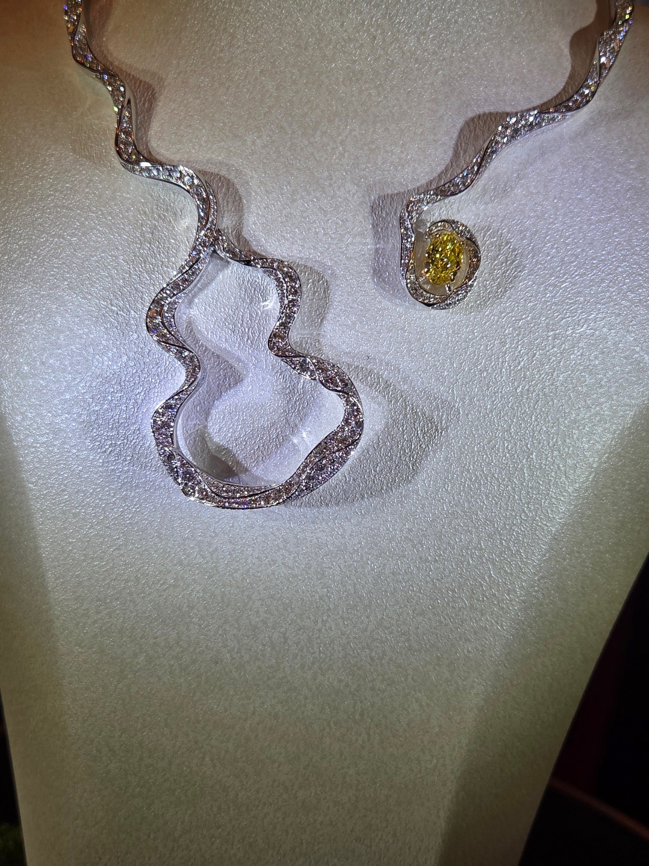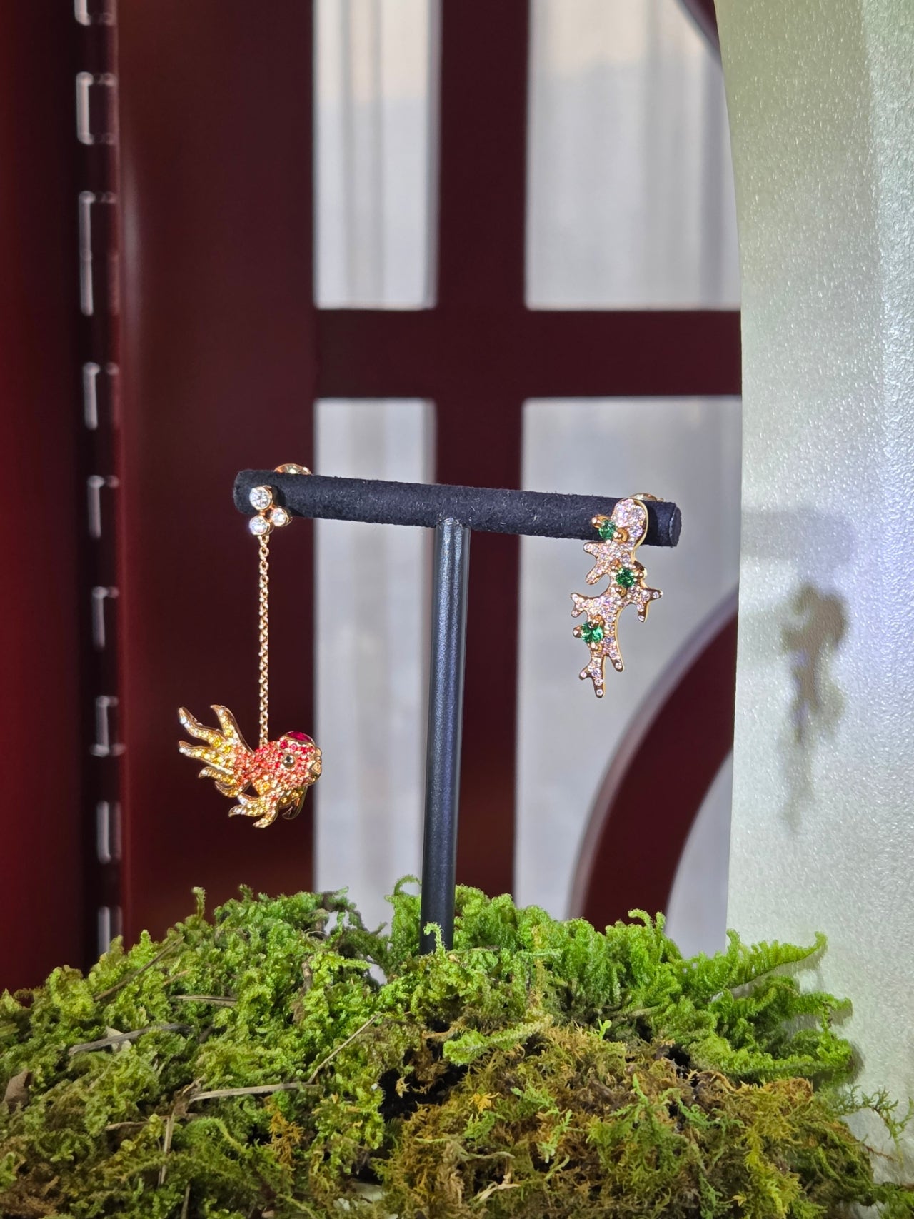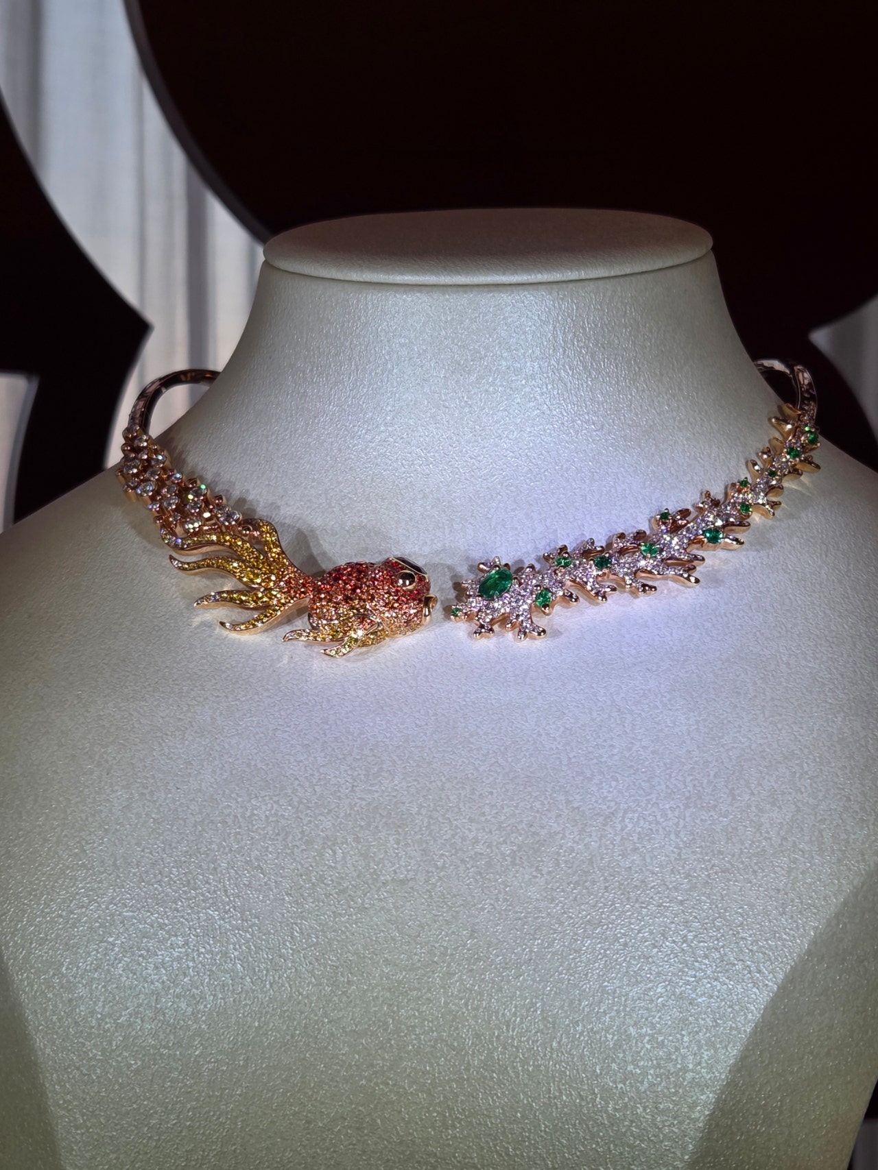 키린의 주얼리 피스들은 판다, 금붕어, 사자 등 자연 속 생명체를 모티브로 한 작품들이 주를 이루었는데요. 그중 제게 특히 인상 깊었던 건, 바로 사자춤을 한 땀 한 땀 천연 다이아와 유색 주얼리로 유려하게 커팅한 XI XI 시리즈였어요.