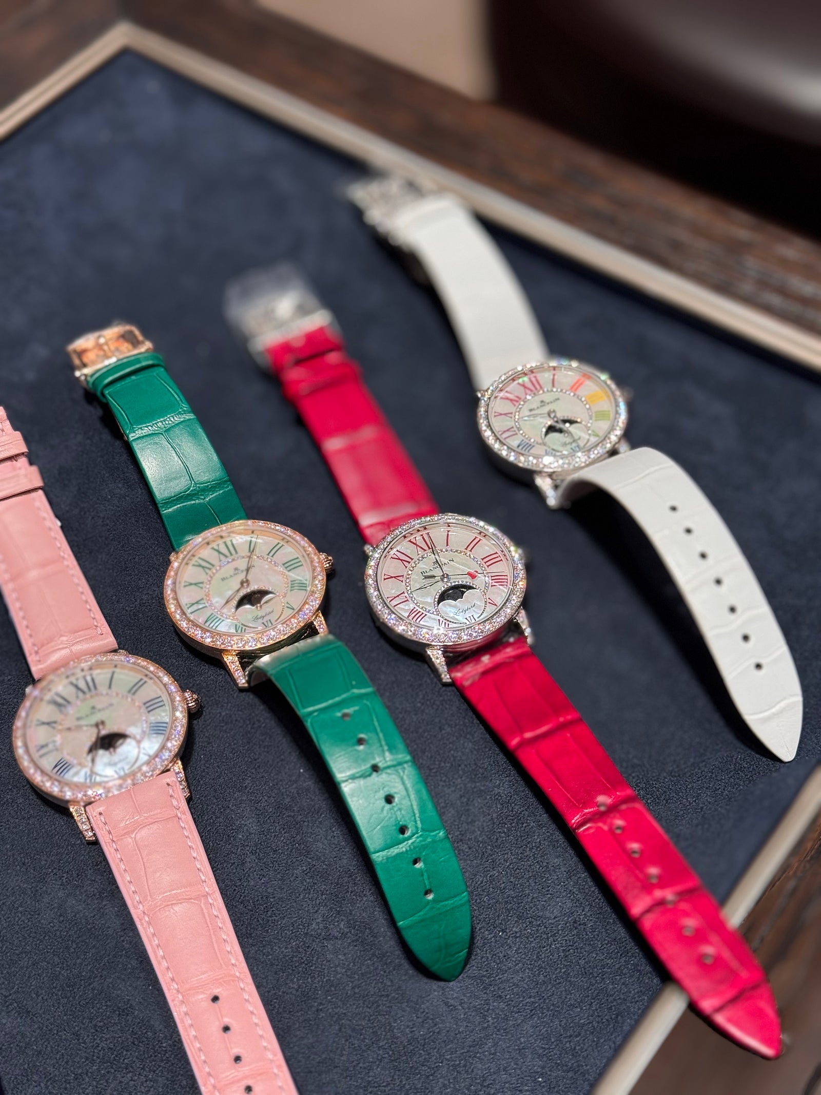 문페이즈는 달을 의미하는데요. 남성 시계에는 남성 느낌의 달이, 여성 시계에는 여성 느낌의 달이 무늬로 있어요.