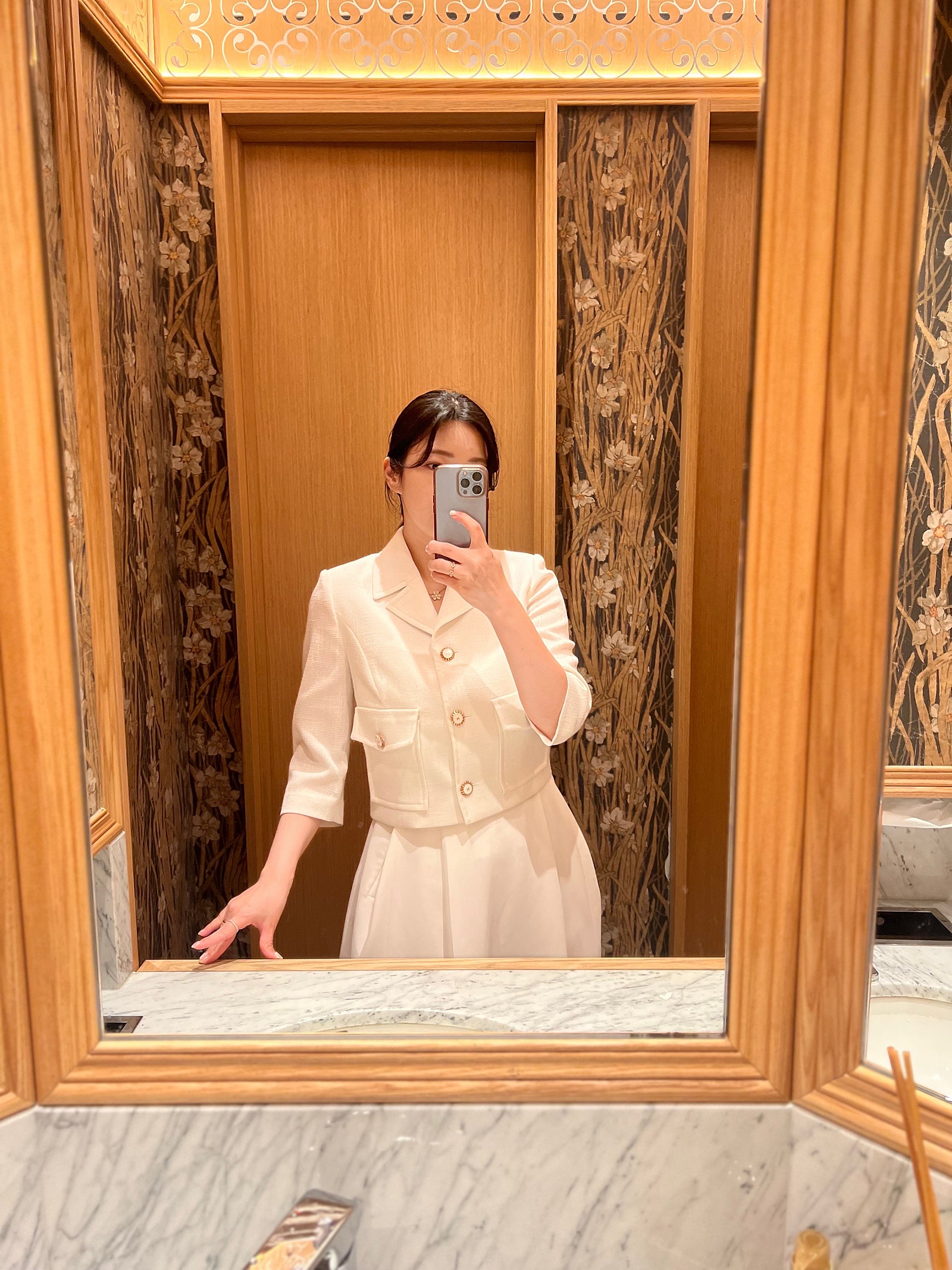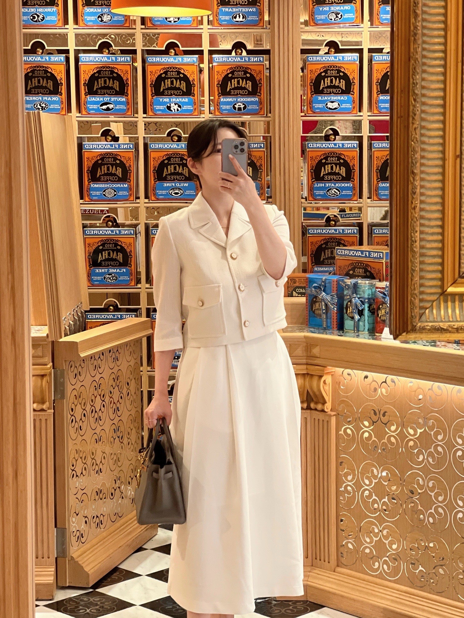 이날 저는 바샤커피 청담 플래그십 스토어에 가기 위해 간만에 옷장을 열고 올 화이트로 입어봤어요.