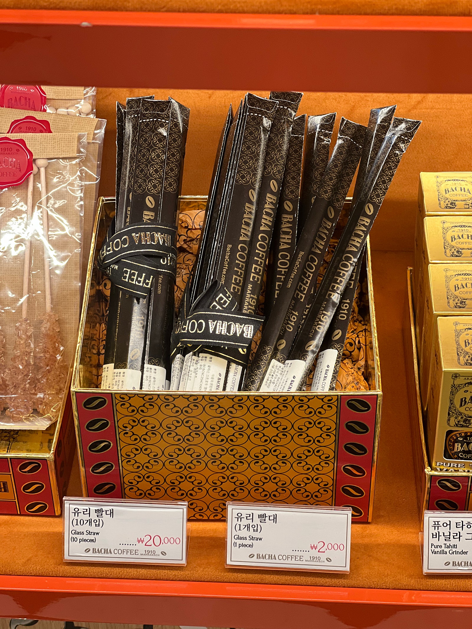 바샤커피에서 제일 유명한 “유리 빨대” 도 보였구요.