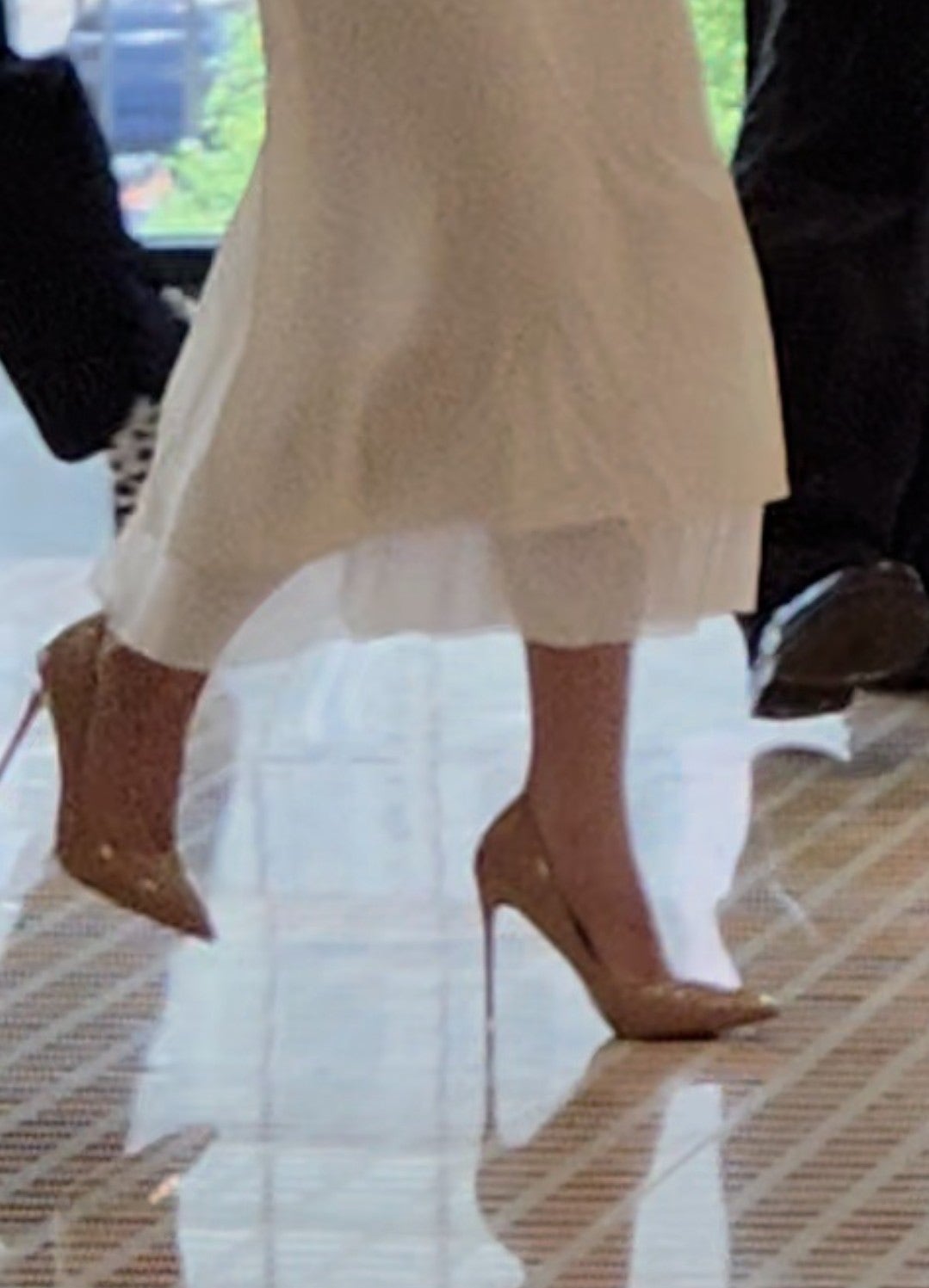 웜톤 한 스푼 머금은 순백 드레스와 잘 어우러졌던 힐 루부탱 케이트 100mm 로 추정되어요.
