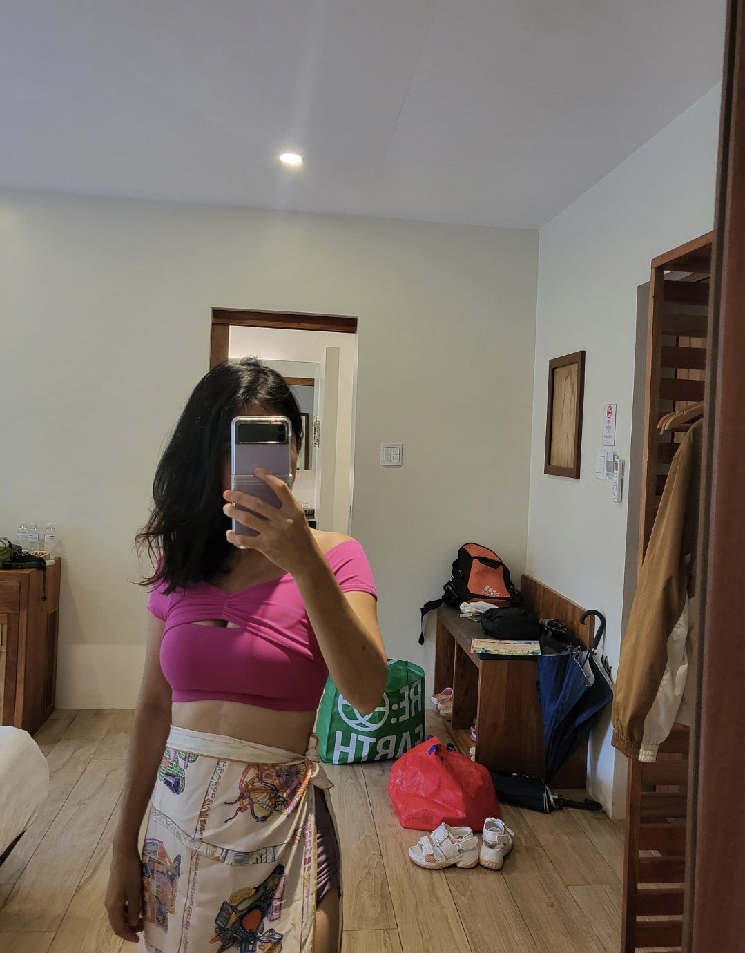 데일리룩으로는 조금 어려울 수 있지만, 여행 시 호캉스룩/라운지룩으로 활용하기 좋은 방법이에요.