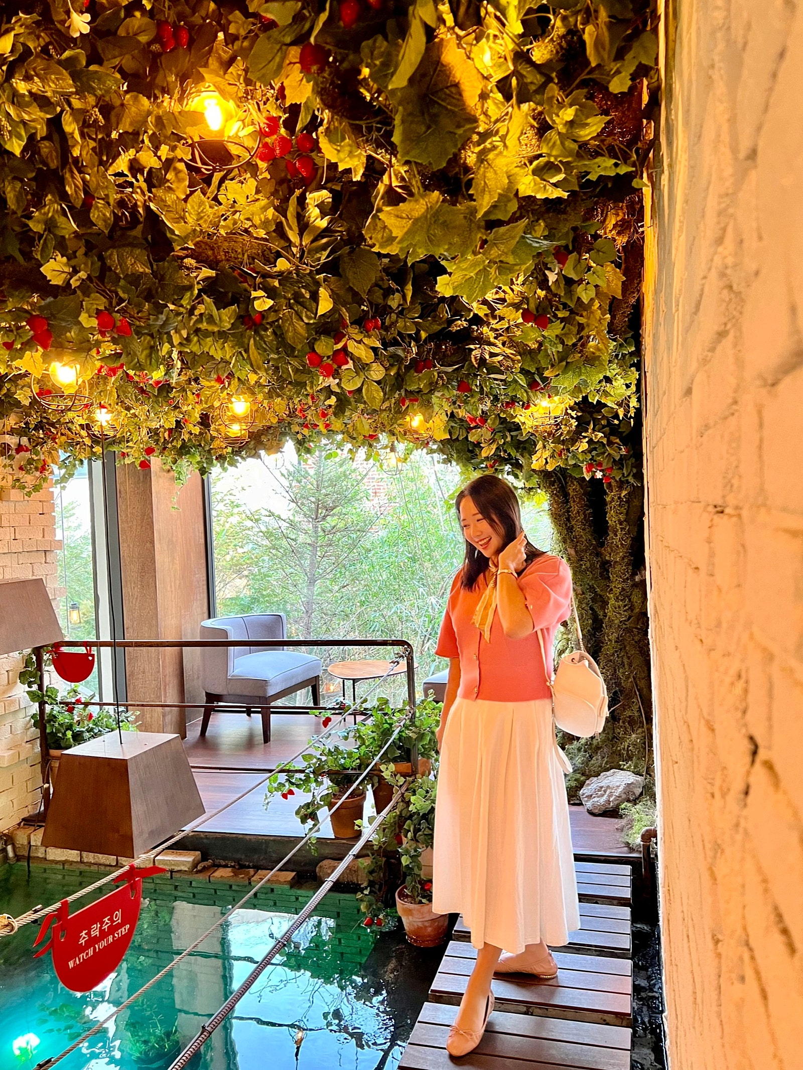제가 갔을 땐 아직 겨울이었는데, 푸릇푸릇한 딸기 열매가 열린 나무랑 조명 그리고 물까지 있어서 미리 봄을 만난 것처럼 기분이 좋더라고요. 베리베리머치는 들어가는 길도 물이 흐르고 기찻길에 대나무숲까지 조경 너무 푸릇푸릇하고 도심 속 숲처럼 꾸며둬서 힐링되더라구요.