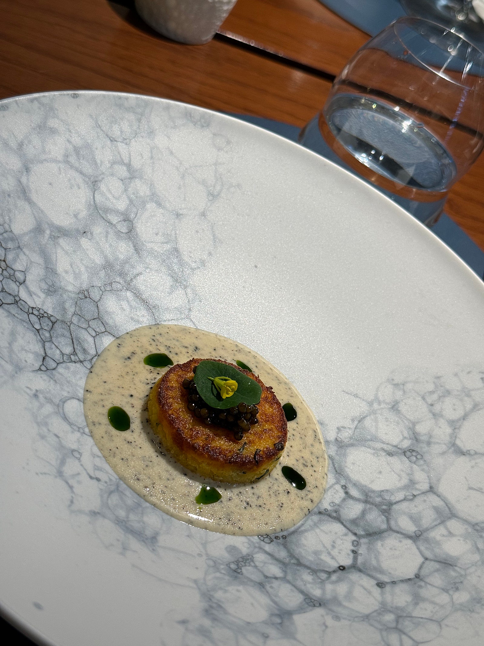 다음은 폴렌타에 고르곤졸라 소스와 캐비어였어요. 저는 쫀득한 감자뇨끼만 좋아하고 푸석한 계란 식감인 폴렌타 뇨끼는 별로 안 좋아해서 소스랑 캐비어만 싹싹 긁어먹었어요.