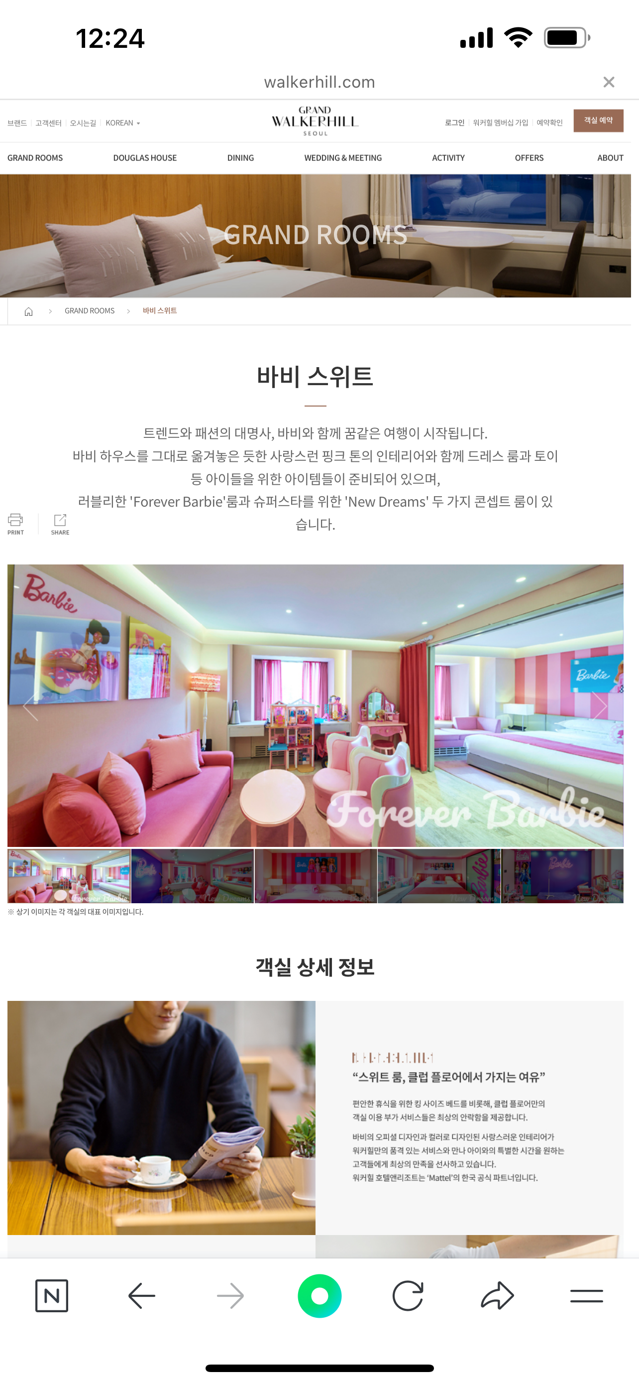 워커힐 바비룸에서만 볼 수 있던 핑크 감성 소품을 그대로 옮겨다 놓은 스위트룸에서 즐긴 특별한 하루!