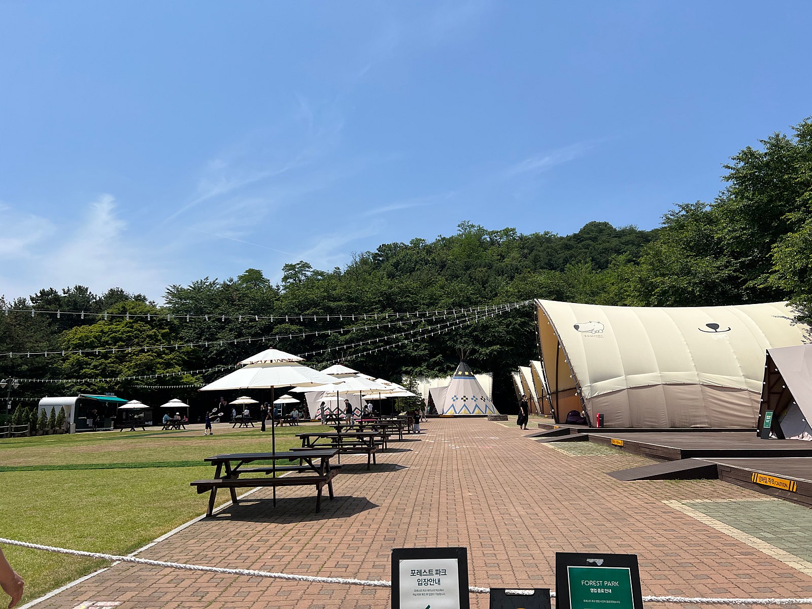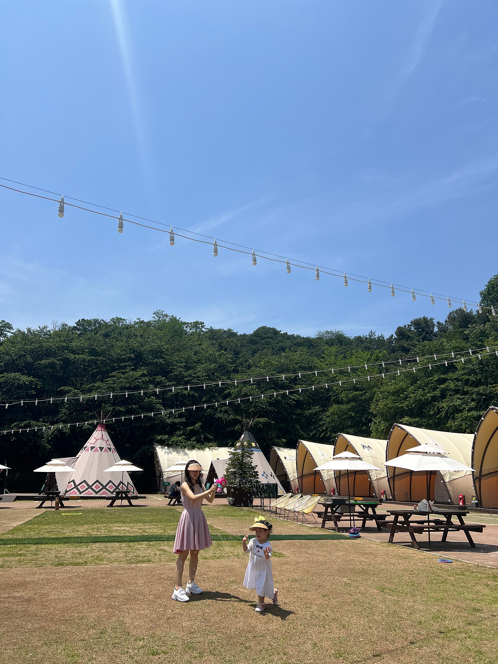 텐트 대여도 가능하고 공용 텐트랑 테라스는 무료 이용이에요.