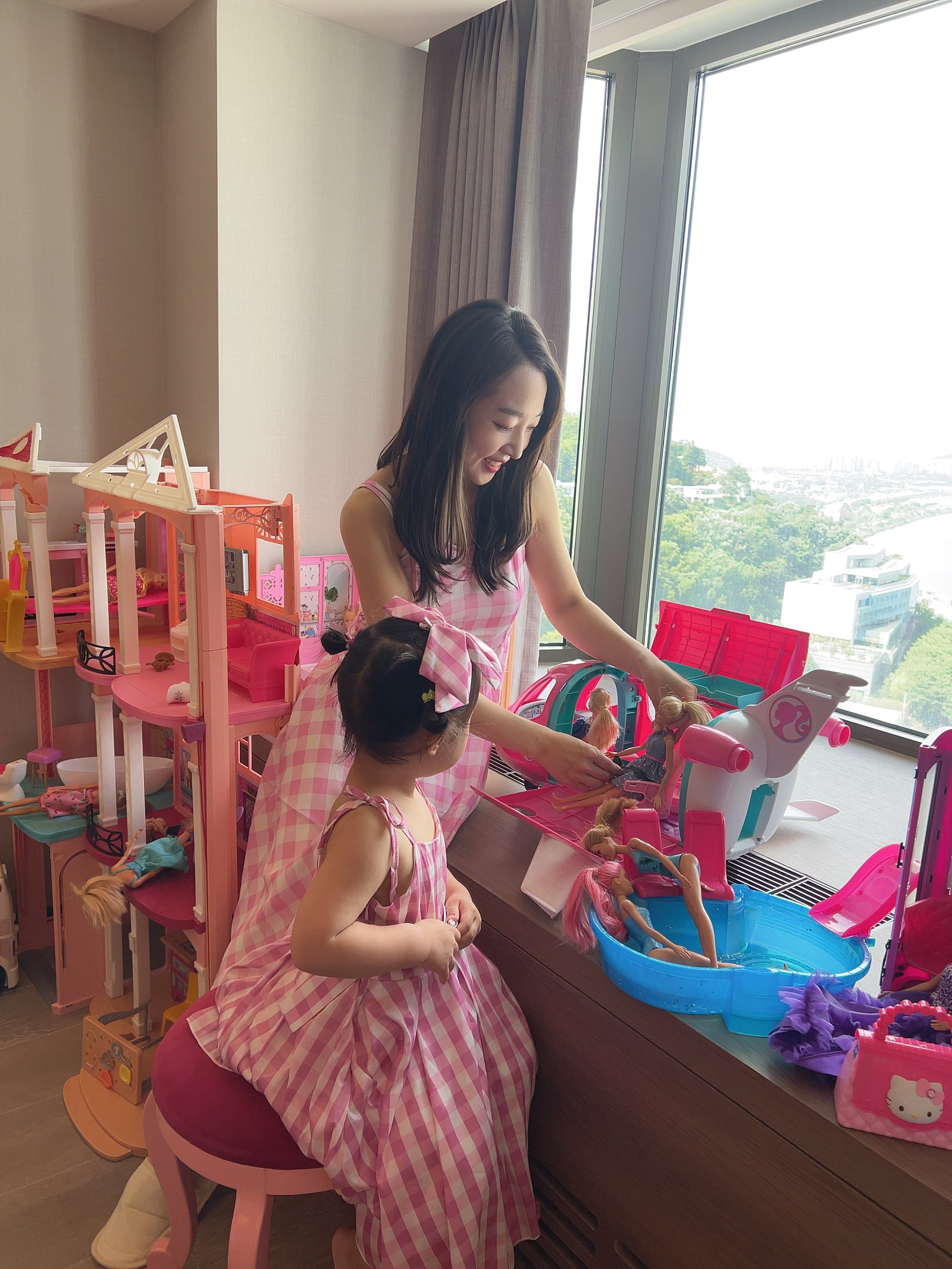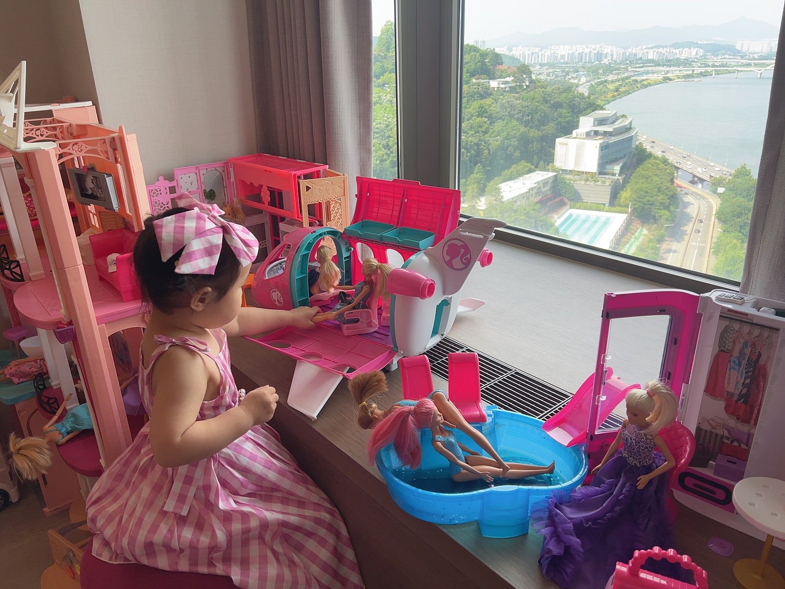 한강 뷰 보면서 바비 소품들이랑 육아 중이에요.