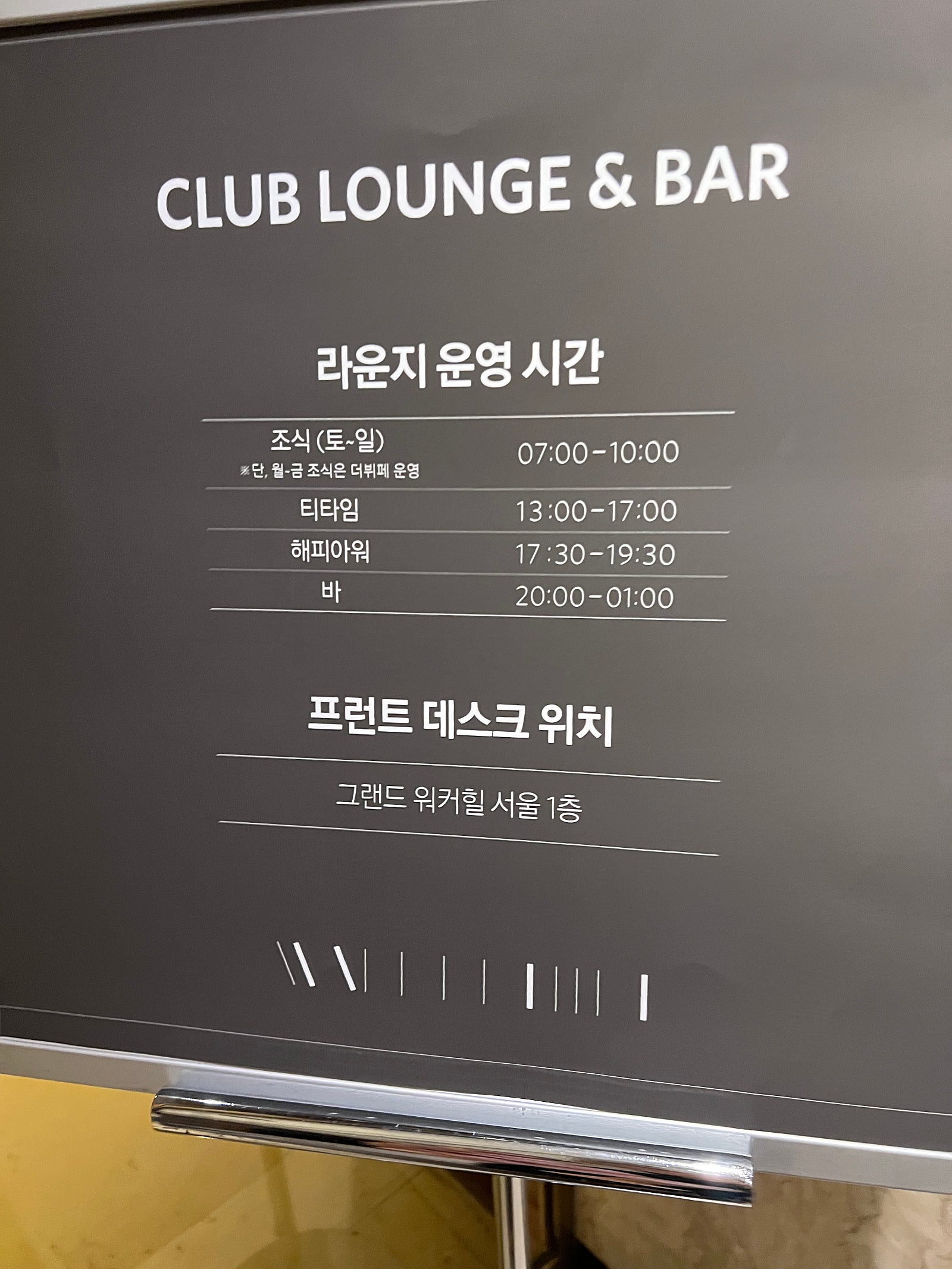 라운지는 티타임, 해피아워(성인만 이용 가능, 아이와 가면 교대로 먹어야 해요😆) 이용 가능하고, 주말 공휴일은 조식도 라운지에서 가능해요.