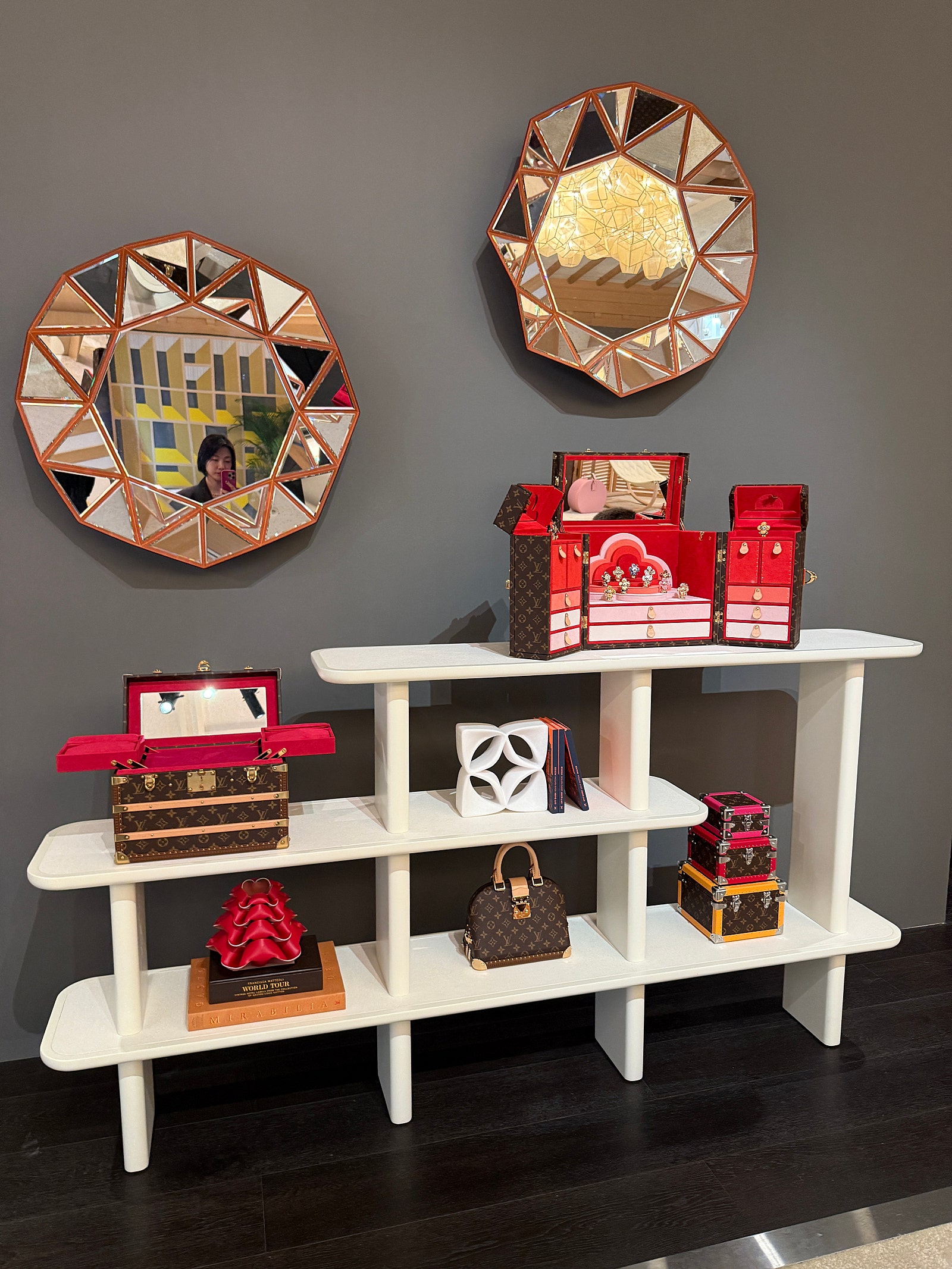 루이비통 가구들 정말 예쁜 거 아세요? 제일 처음 눈에 들어온 건 저 화이트 선반이었는데요, 예쁜 오브젝트들이 올려져있으니 더 눈이 갔어요.