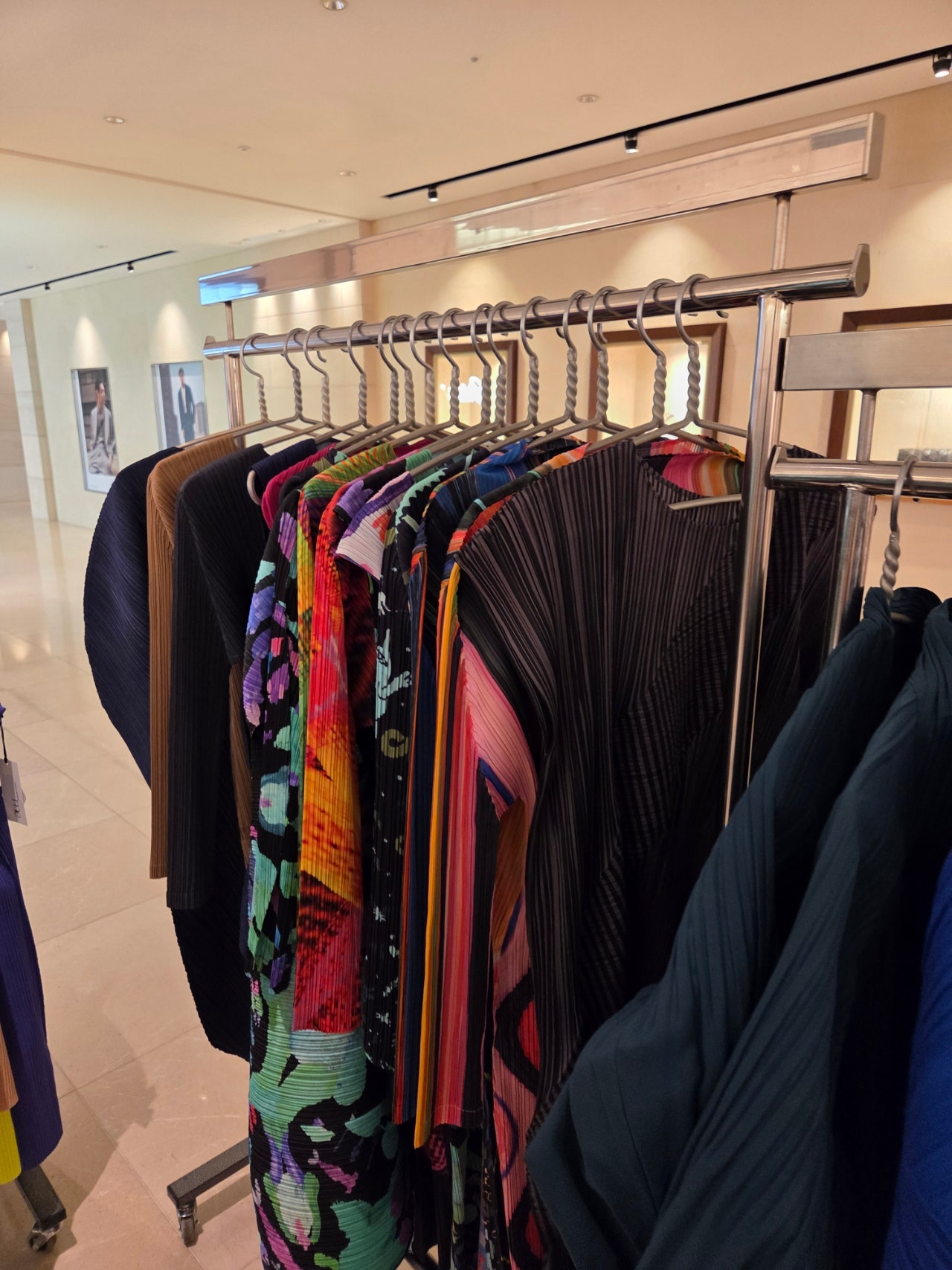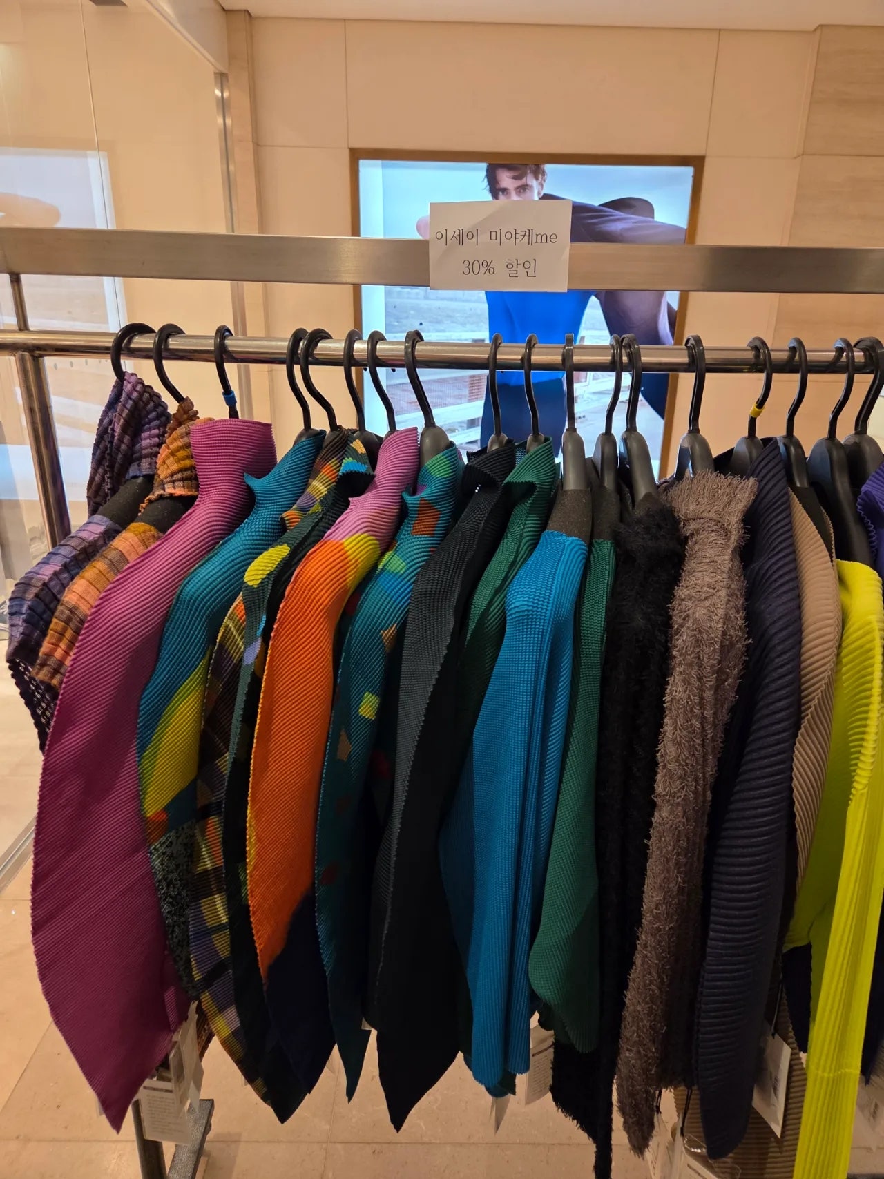 ✔️ me 라인은 행거 하나정도의 재고가 남아있었는데요, 주로 강렬한 컬러와 무늬 디테일이 들어간 제품들이 대부분이었습니다.