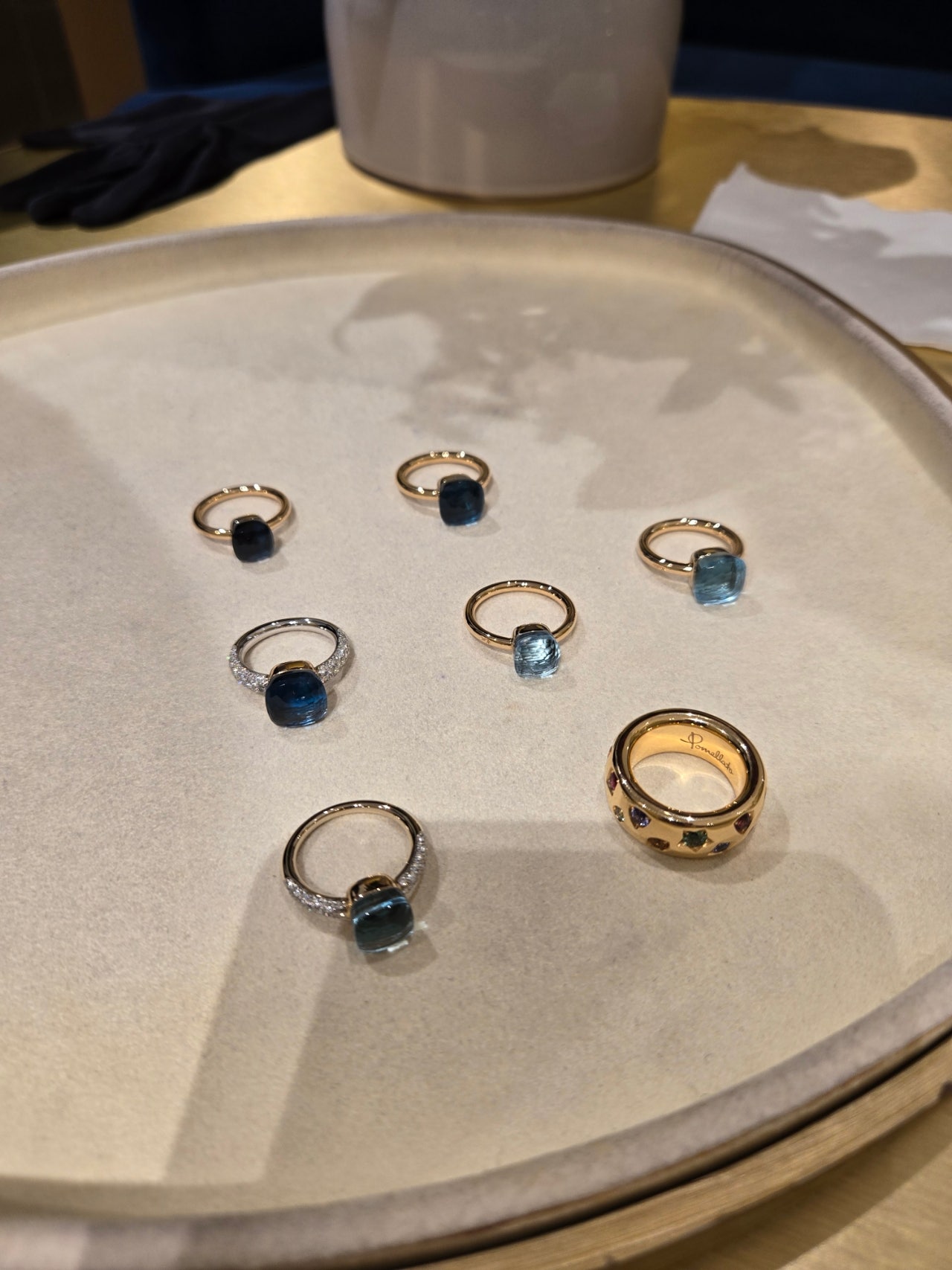 사선으로 보면 또 색상이 달랐어요. 토파즈와 사파이어 조합.