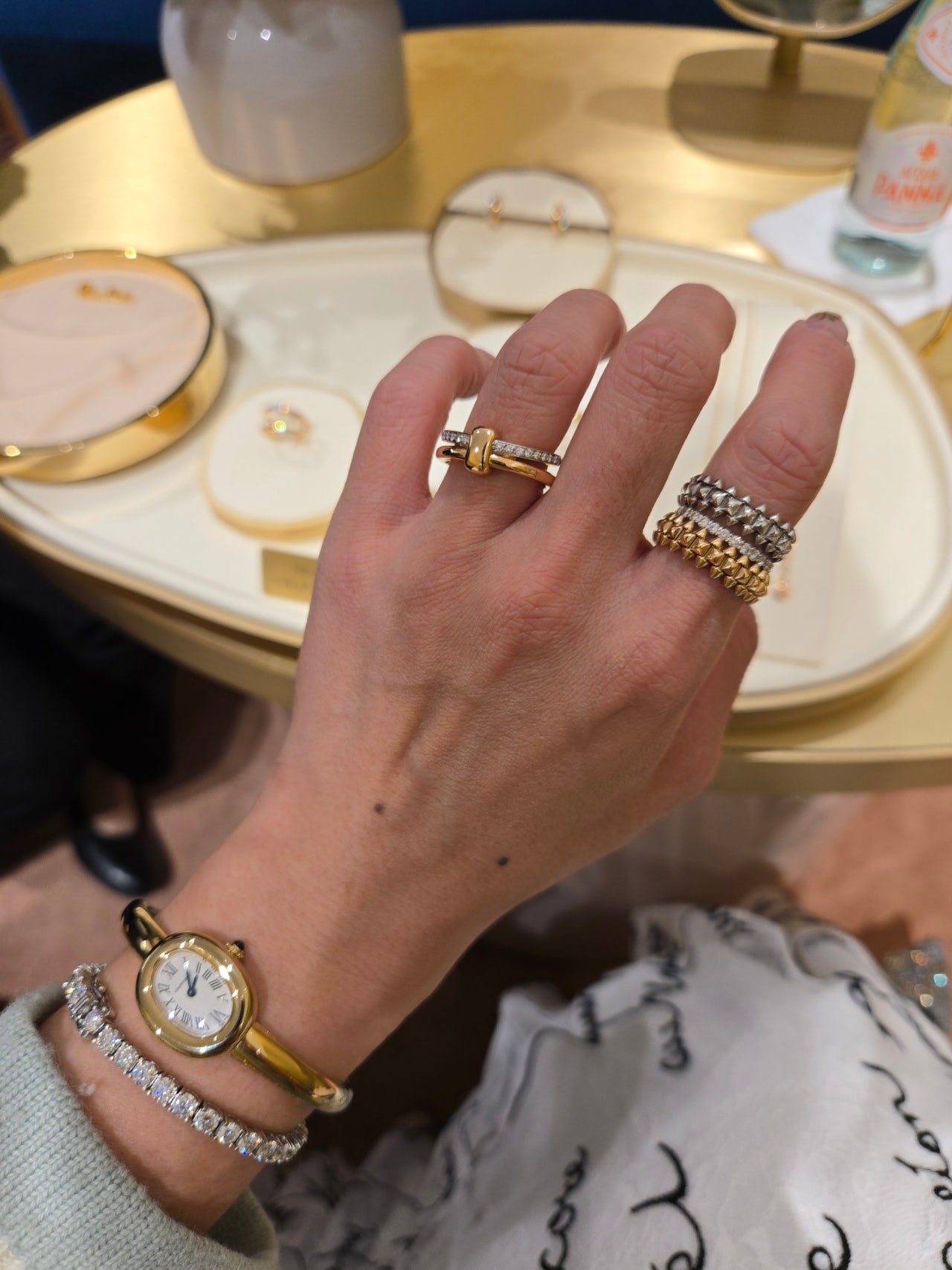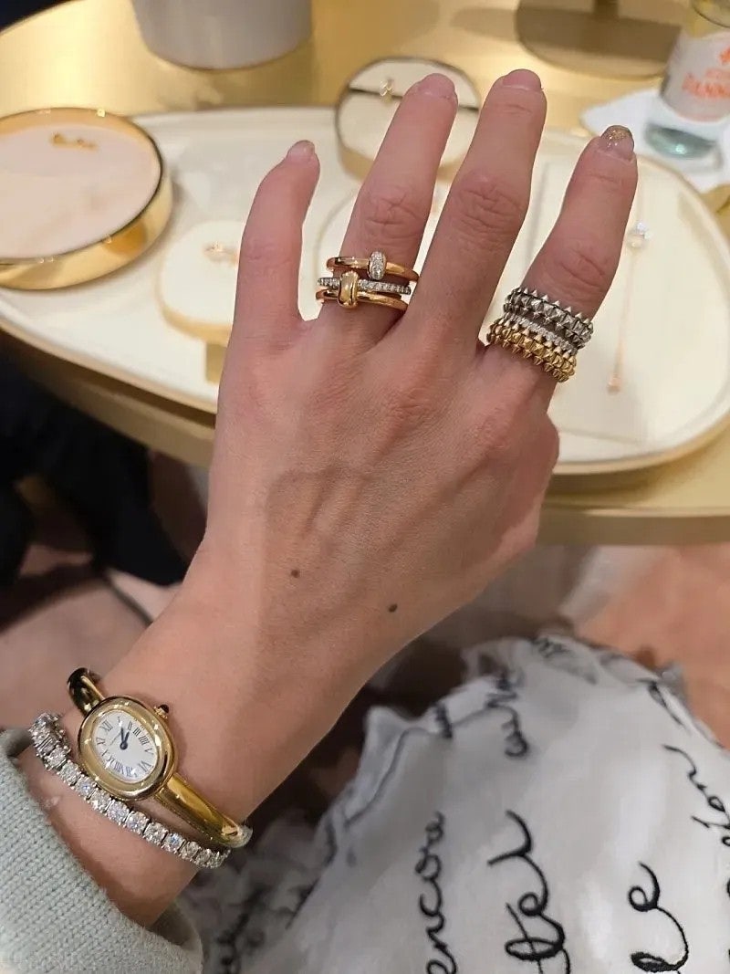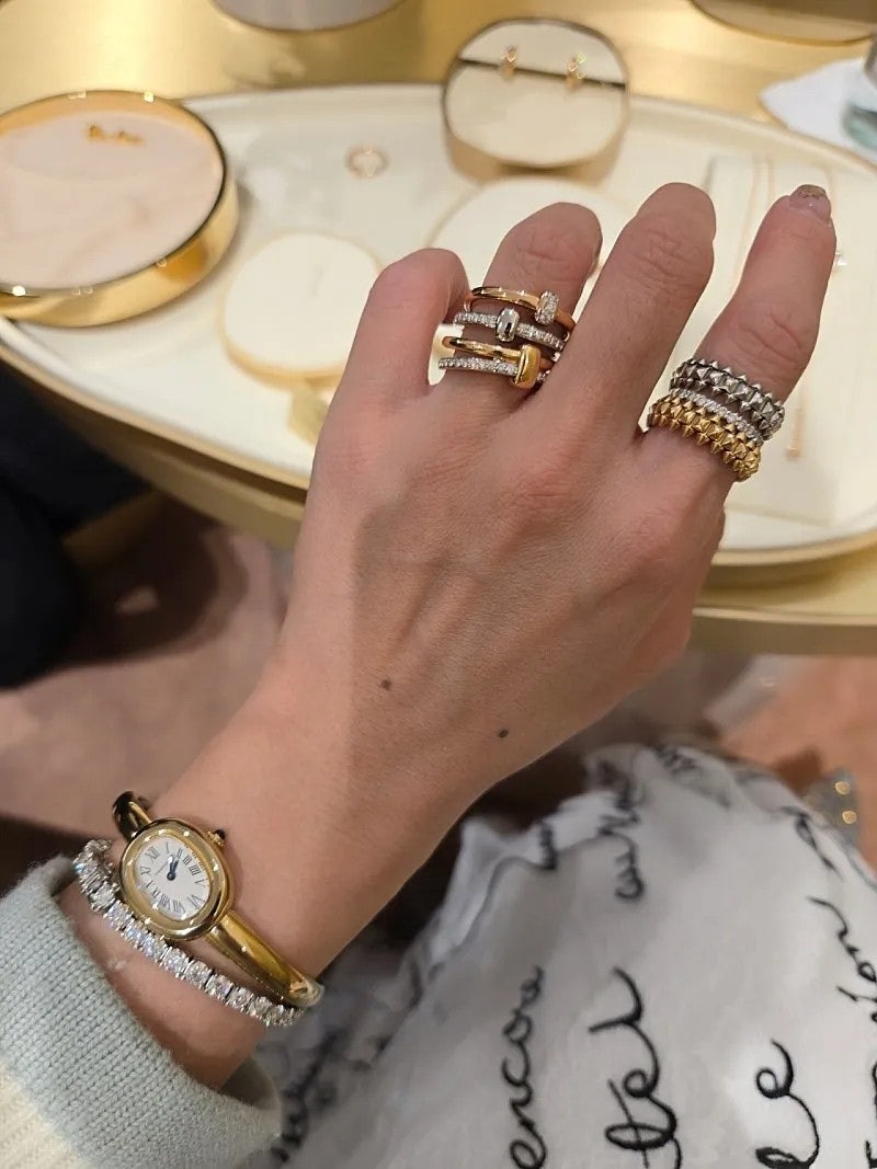 ​포멜라토는 지디가 착용한 이코니카나 카테네 같은 볼드한 라인이 있어서 한쪽은 까르띠에 베누아 뱅글과 클래쉬드 링들을 착용했구요.