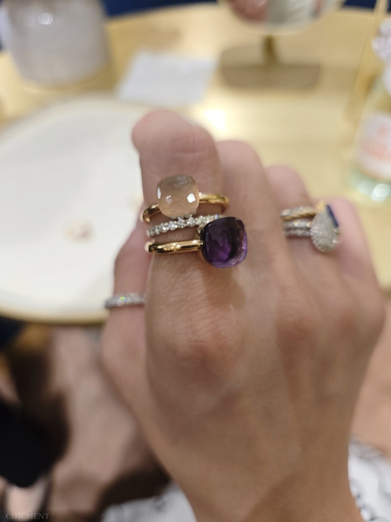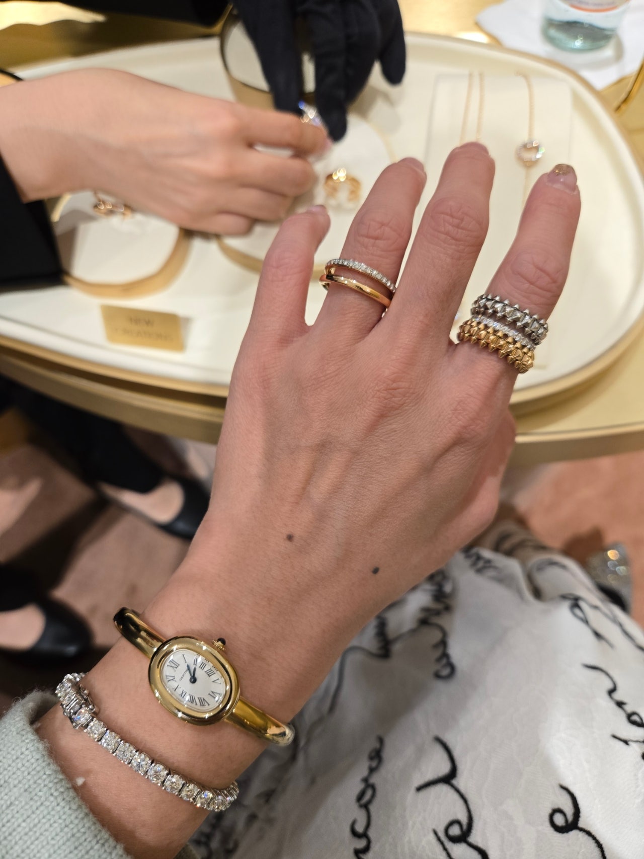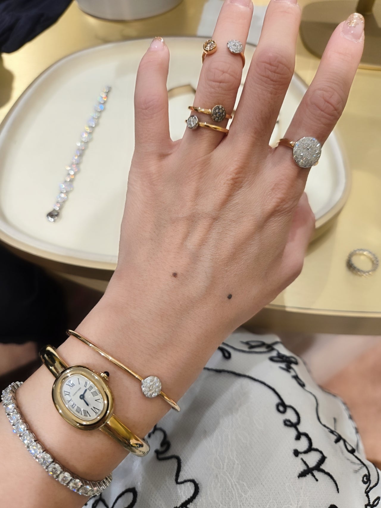 ​포멜라토는 지디가 착용한 이코니카나 카테네 같은 볼드한 라인이 있어서 한쪽은 까르띠에 베누아 뱅글과 클래쉬드 링들을 착용했구요.