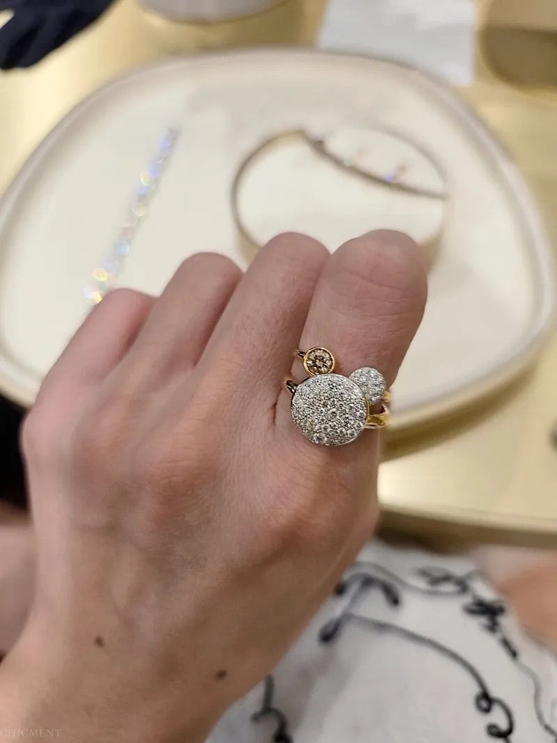 ​존재감 있는 알이 큰 반지랑 오픈형 반지 레이어드하면 곰돌이가 완성됩니다.