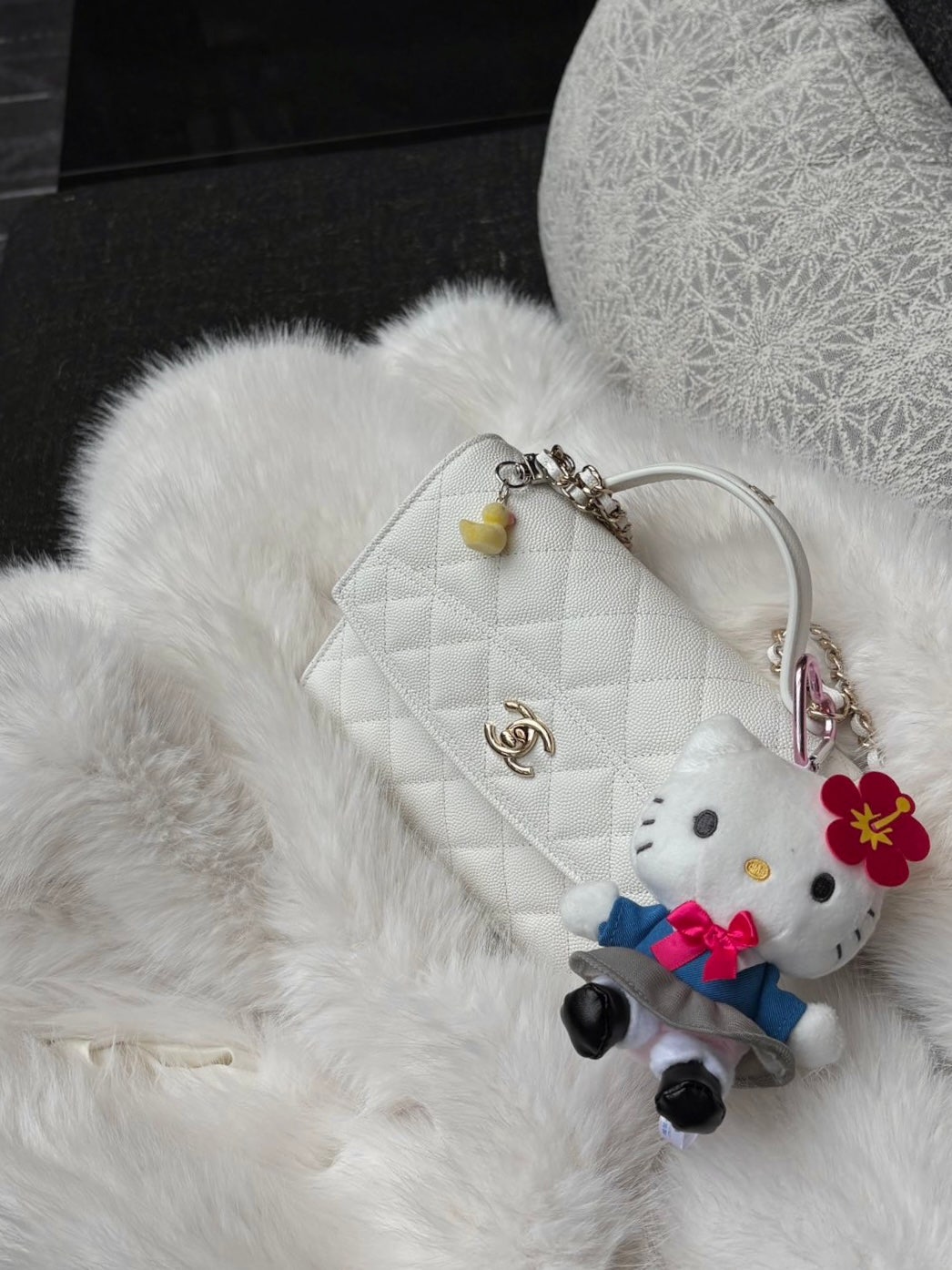 · 빽꾸와 찰떡 – 미니백 사이즈라 어떤 백참이든 잘 어울려요. 샤넬 향수 키링부터 헬로키티까지