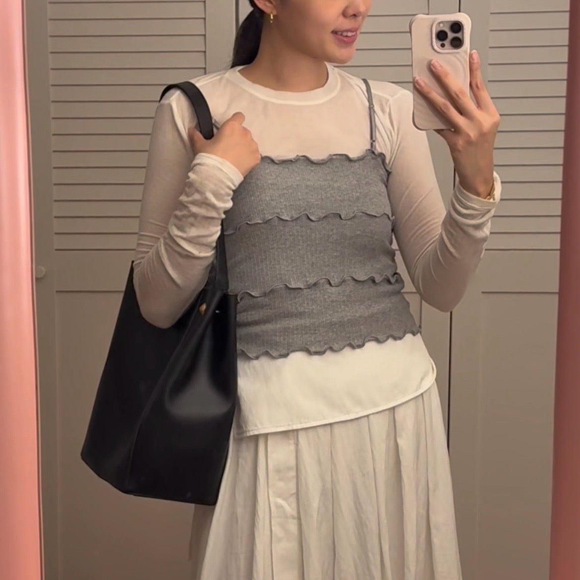 그만큼 다양한 룩에 모두 잘 어울리고 가볍고 수납도 잘되는 것이 더 만족스러운 가방이에요.