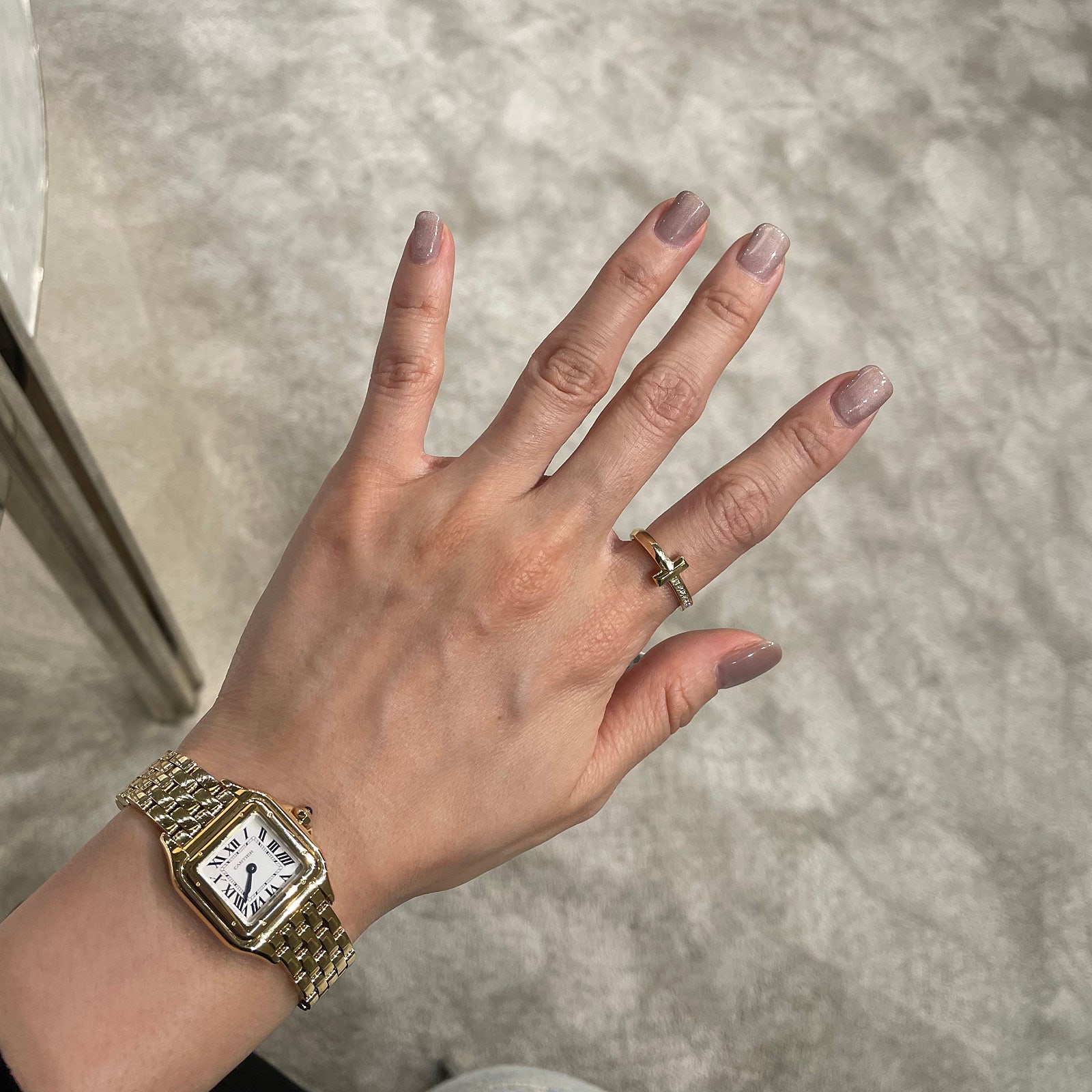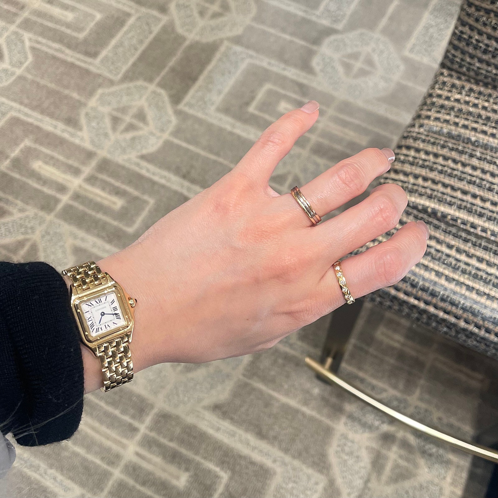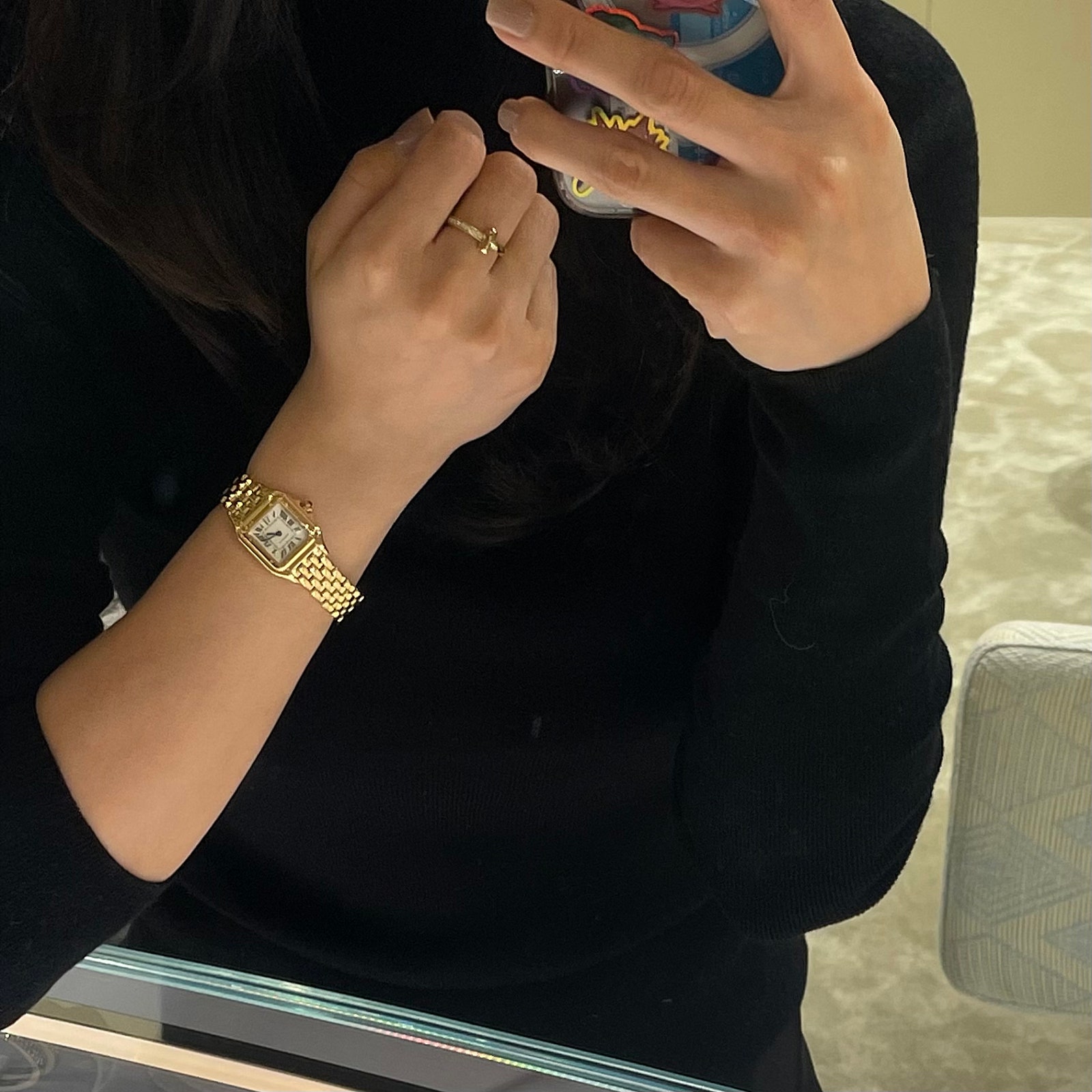 오늘은 까르띠에 시계 팬더 옐로우 골드. 팬더 금통 시계와 어울리는 반지 소개할게요.
