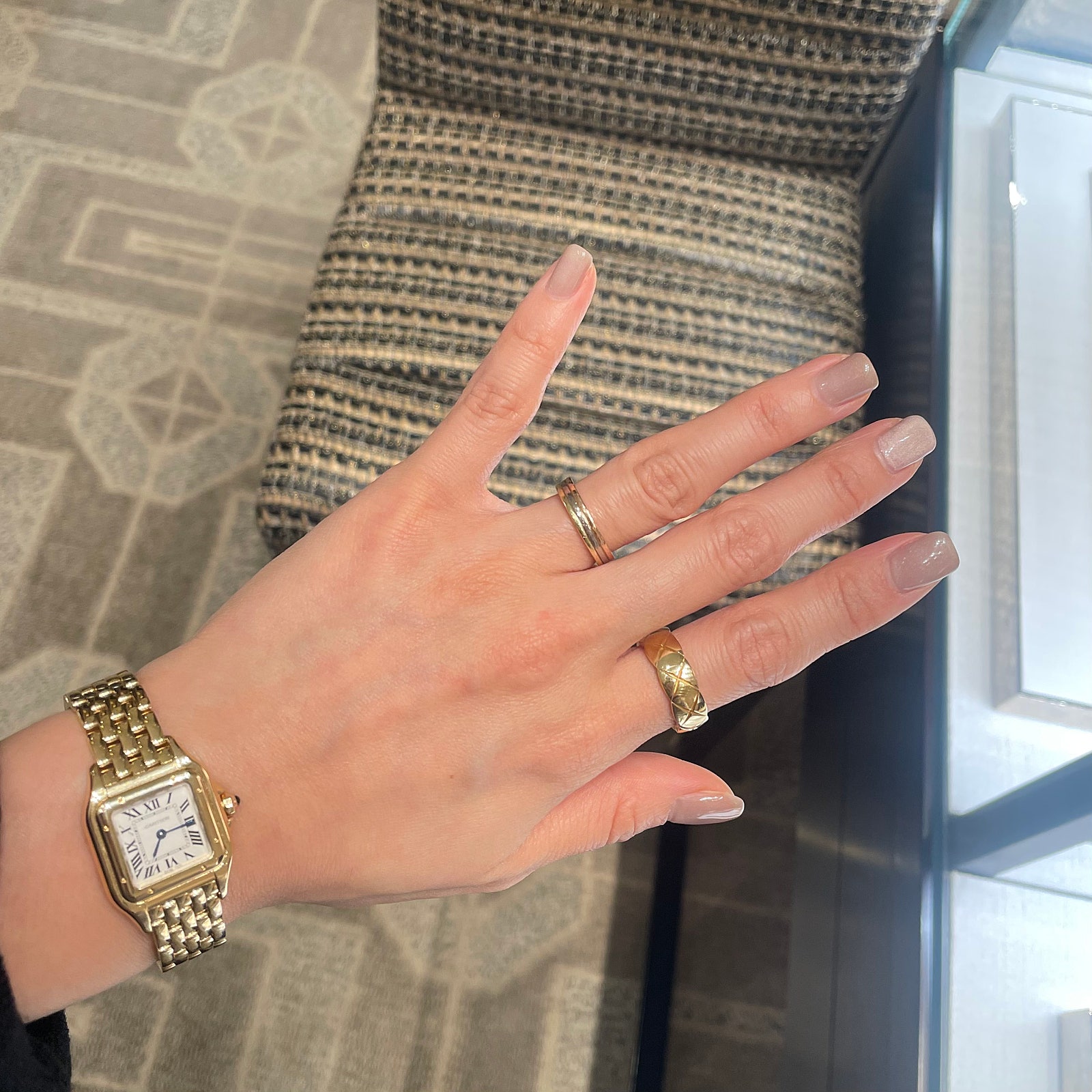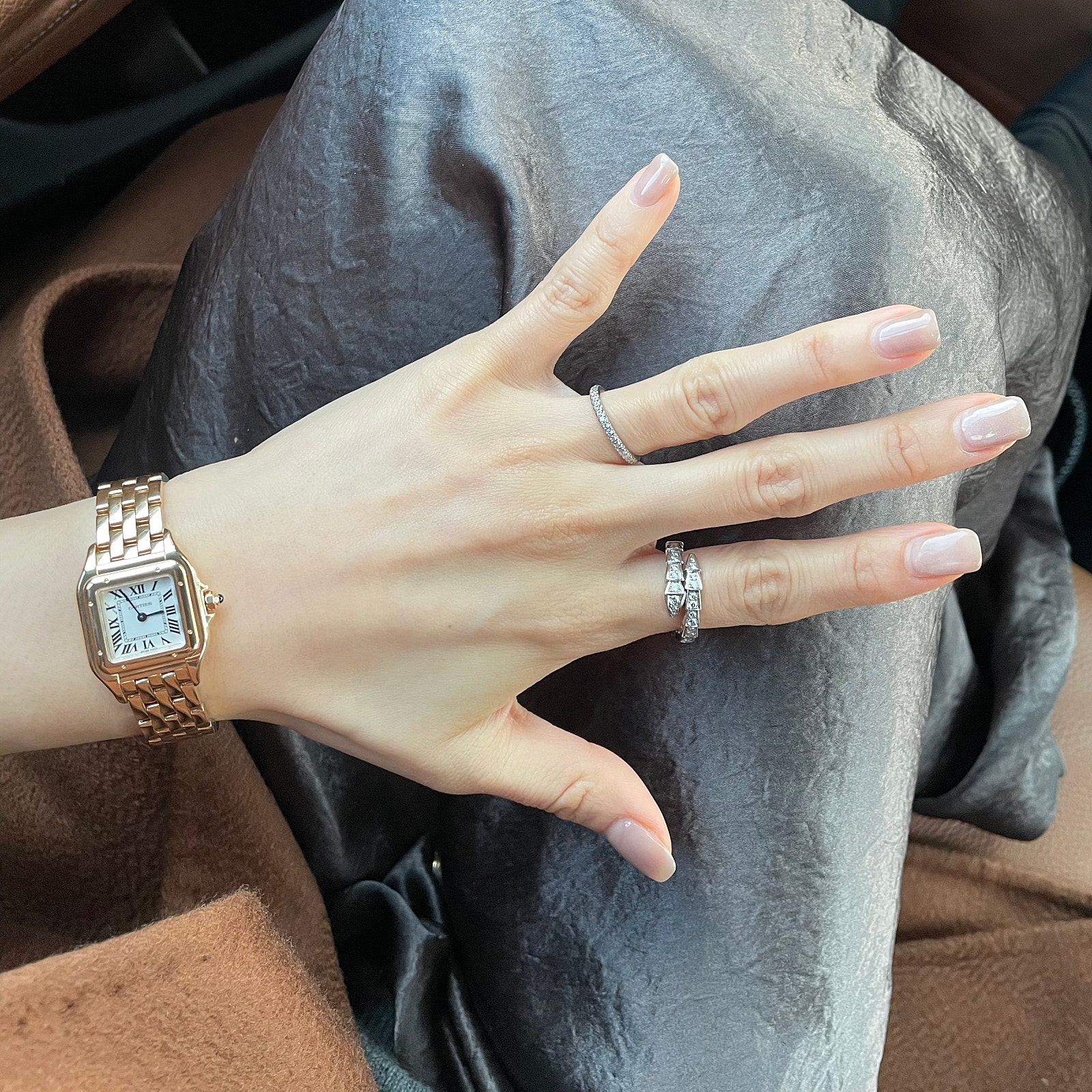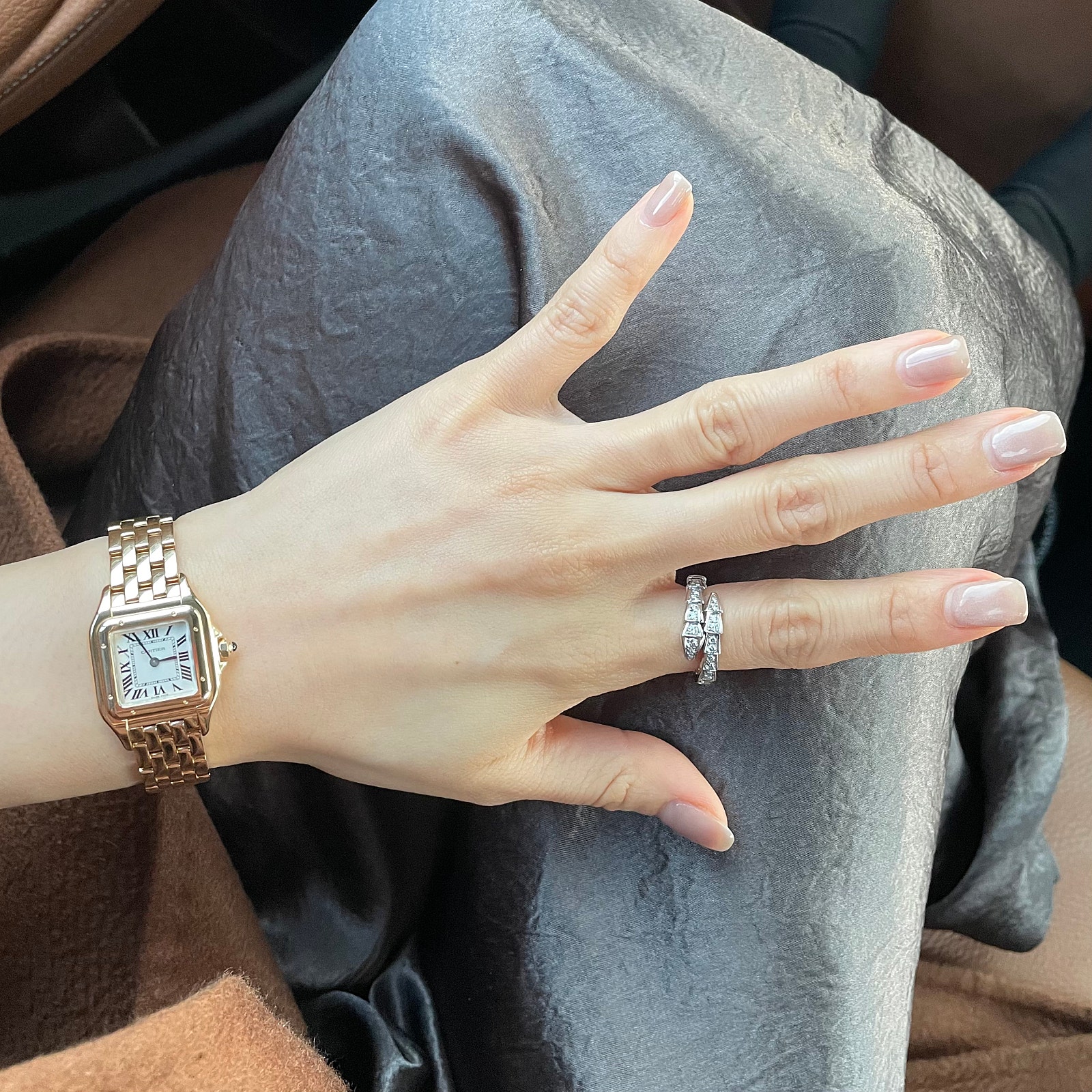 오늘은 까르띠에 시계 팬더 옐로우 골드. 팬더 금통 시계와 어울리는 반지 소개할게요.
