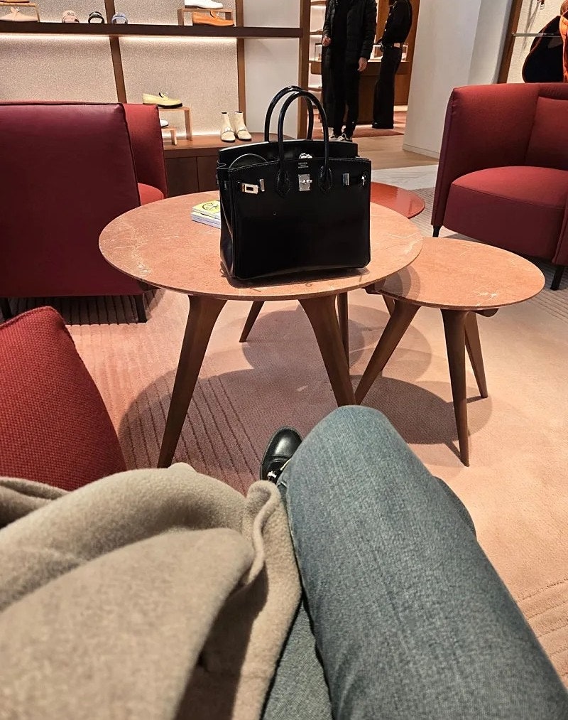 ​그래서 복스 좋아하긴 하는데, 최근에 켈리 25로 받았다고 말하며 다른 복스 가죽 작은 가방은 없는지 물어봤어요. 사실 버킨으로 받고 싶었다는 이야기와 함께요.