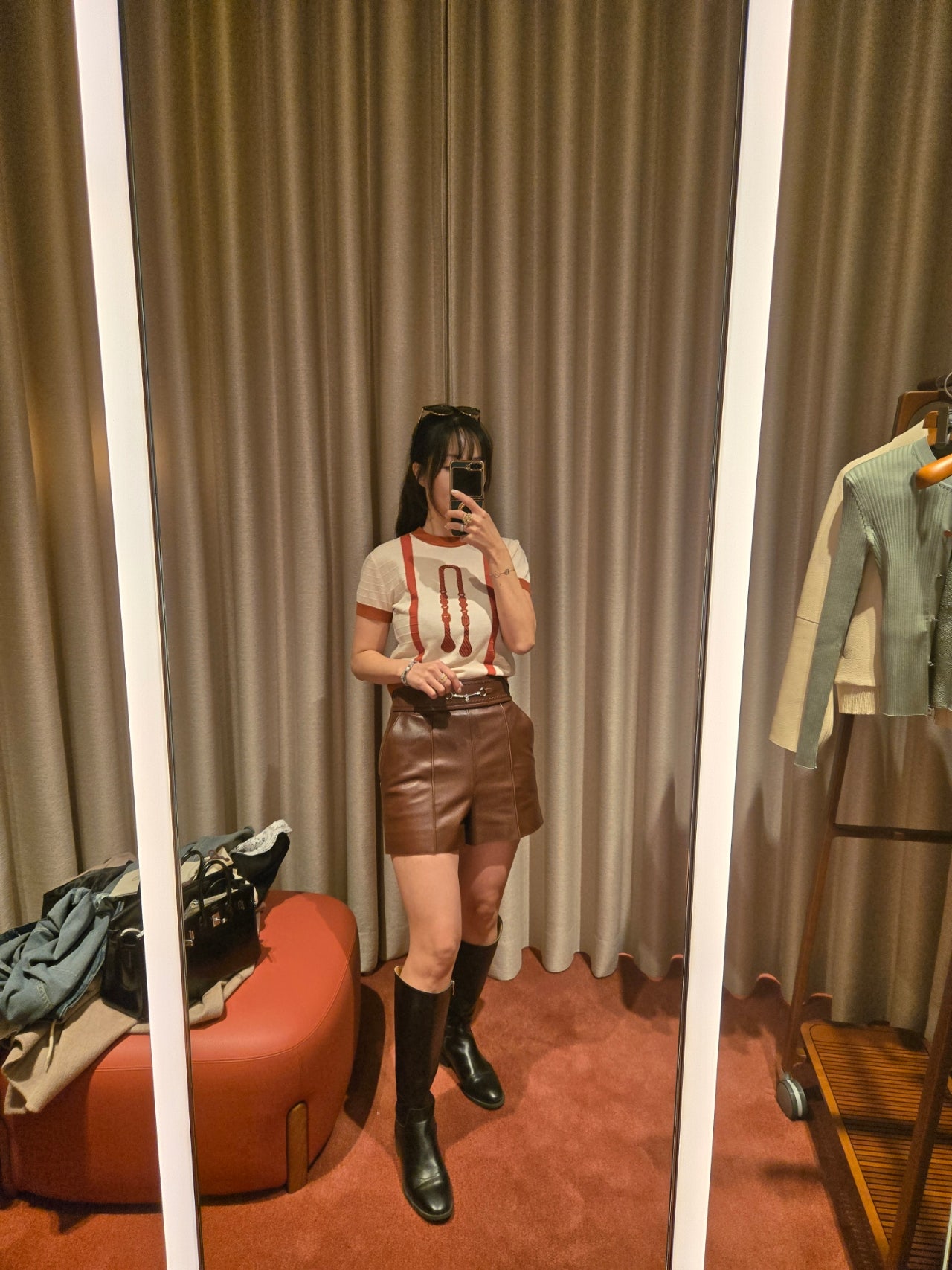 ​예뻐 보인 가죽 바지랑 신상 반팔 니트.