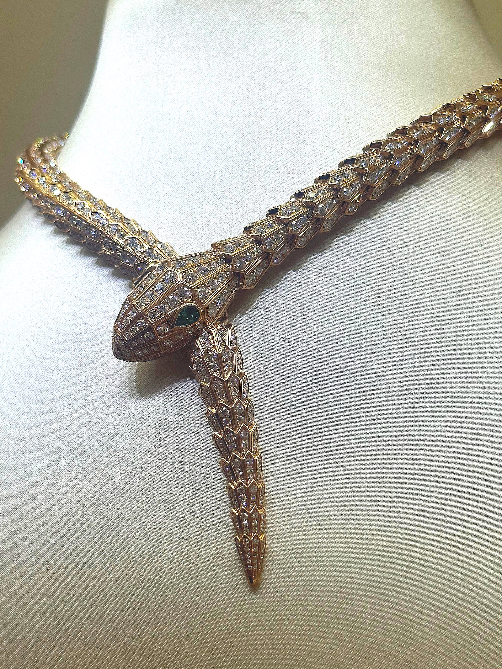 촘촘한 다이아 세팅이 묵직한 세르펜티 하이주얼리 네크리스