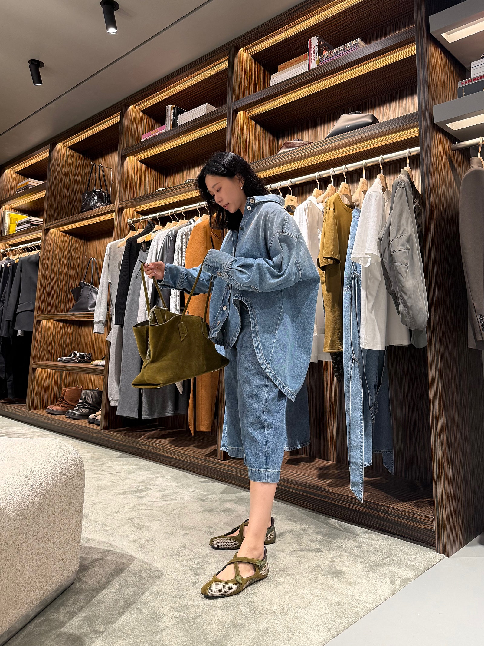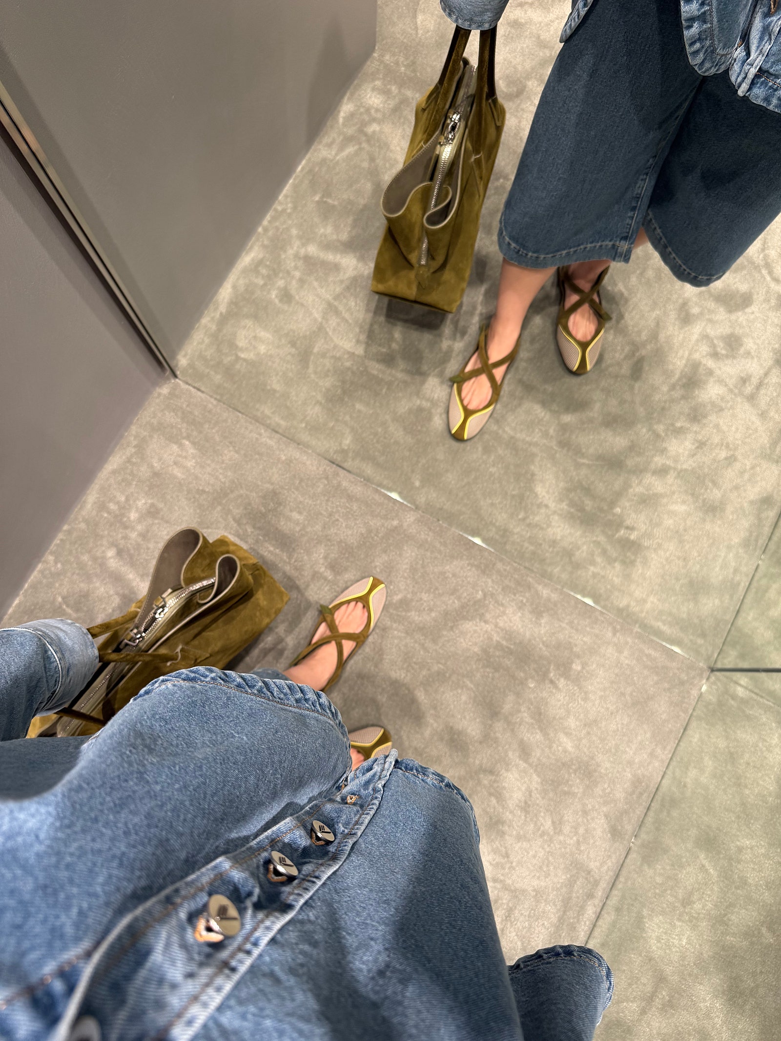여기에 디아티코의 시그니처 아이템인 라 파세지아타 백(카키 컬러)플로어 01 슈즈를 같이 매치하니 확실히 무드가 달라지더라고요.