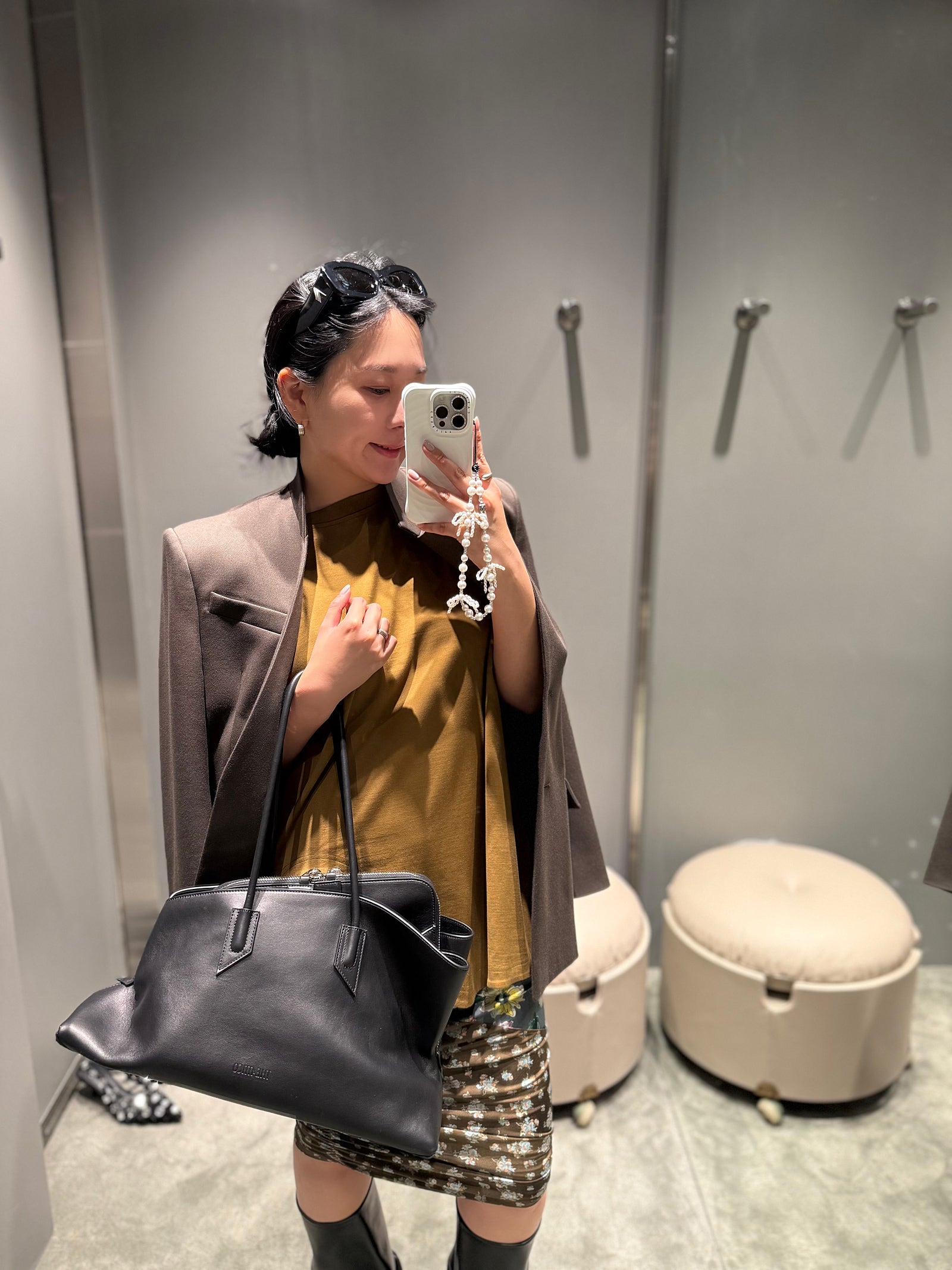 평소라면 그냥 캐주얼한 조합이 될 텐데 가방 특유의 구조적인 라인 덕분에 전체적인 룩이 단정해 보였어요.✨