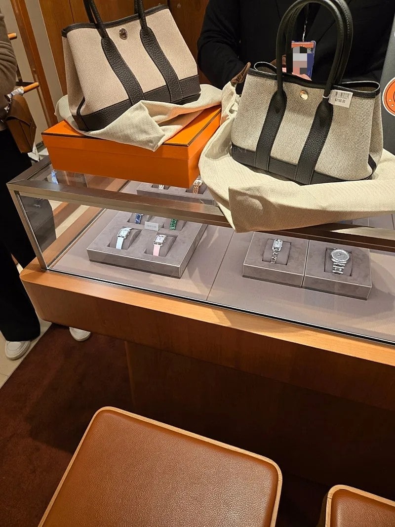 매장 리뷰도 별로고 기대 크게 안 했고, 트윌리도 하나도 없고 없는게 더 많은 매장이었는데요. '한 번 물어나 보자'하고 미니 백을 물어봤는데 에르백은 아직 못 봤고 가든파티는 오늘 두 개 들어왔다고 하시더라고요!