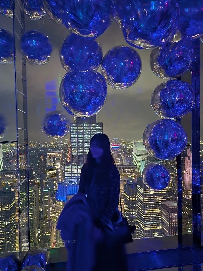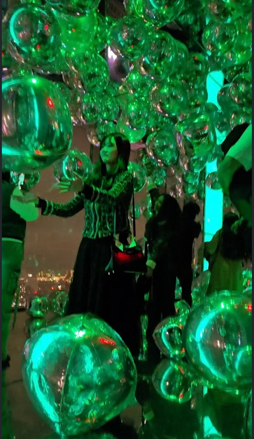 은색 풍선 공과 함께 야경이 보이도록 사진도 찍어봤어요. 이 공은 조명에 따라 색도 변하고 사진 진짜 잘 나와요.