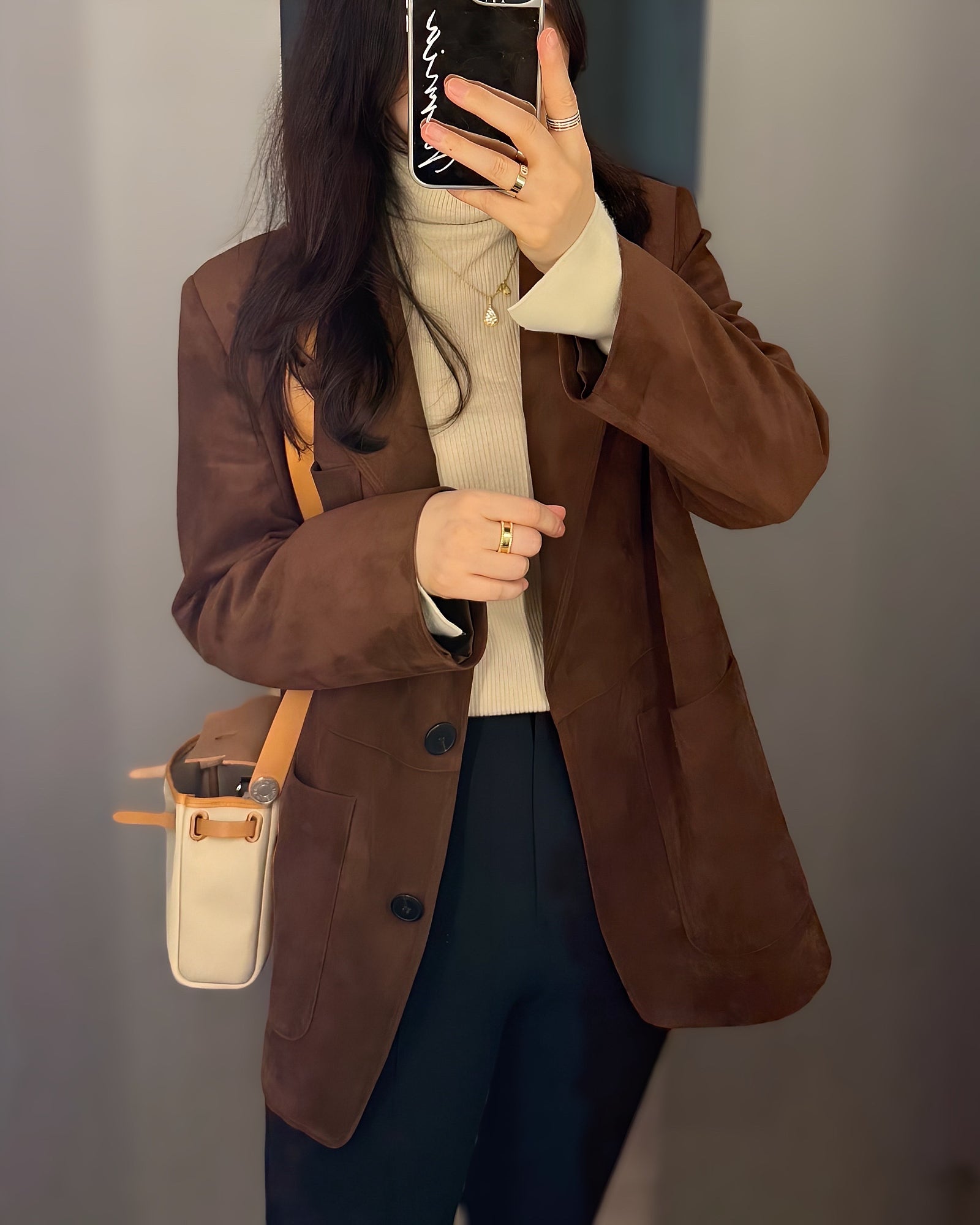 스웨이드자켓! 작년 기은세 님 코디 보고 따라했는데 시크에서 대유행했던 거 같더라구요!
