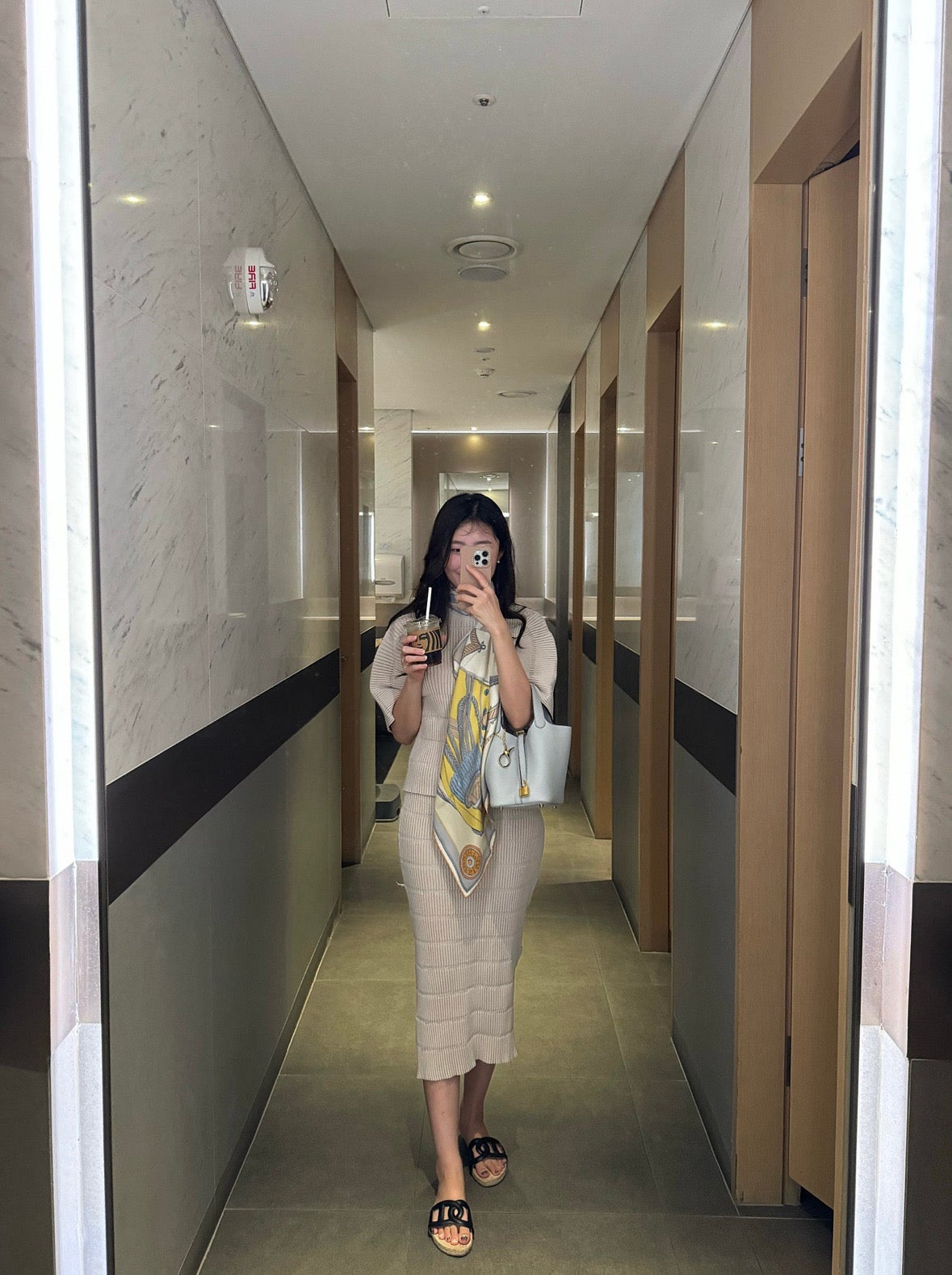 게다가 스트레치 탑에 스카프 하나 스르륵 둘러주면 또 그렇게 이쁠 수가 없습니다. ✨