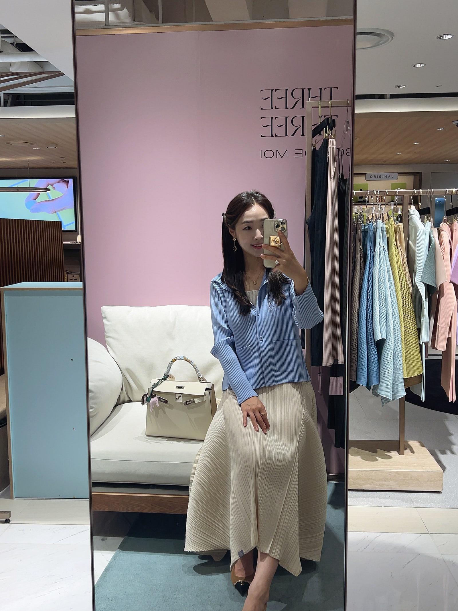 최근 플리츠에 입문해 매력에 빠져 직접 입어보고 왔는데요. 컬러감, 착용감, 소재 퀄리티 모두 만족스러웠어요 :)