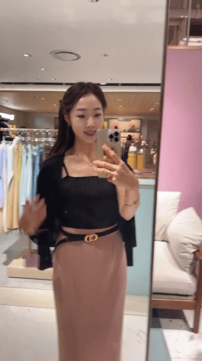 ⭐️스커트: 군살 커버 + 길어 보이는 실루엣. 허리 밴딩 & 신축성으로 편안한 착용감.