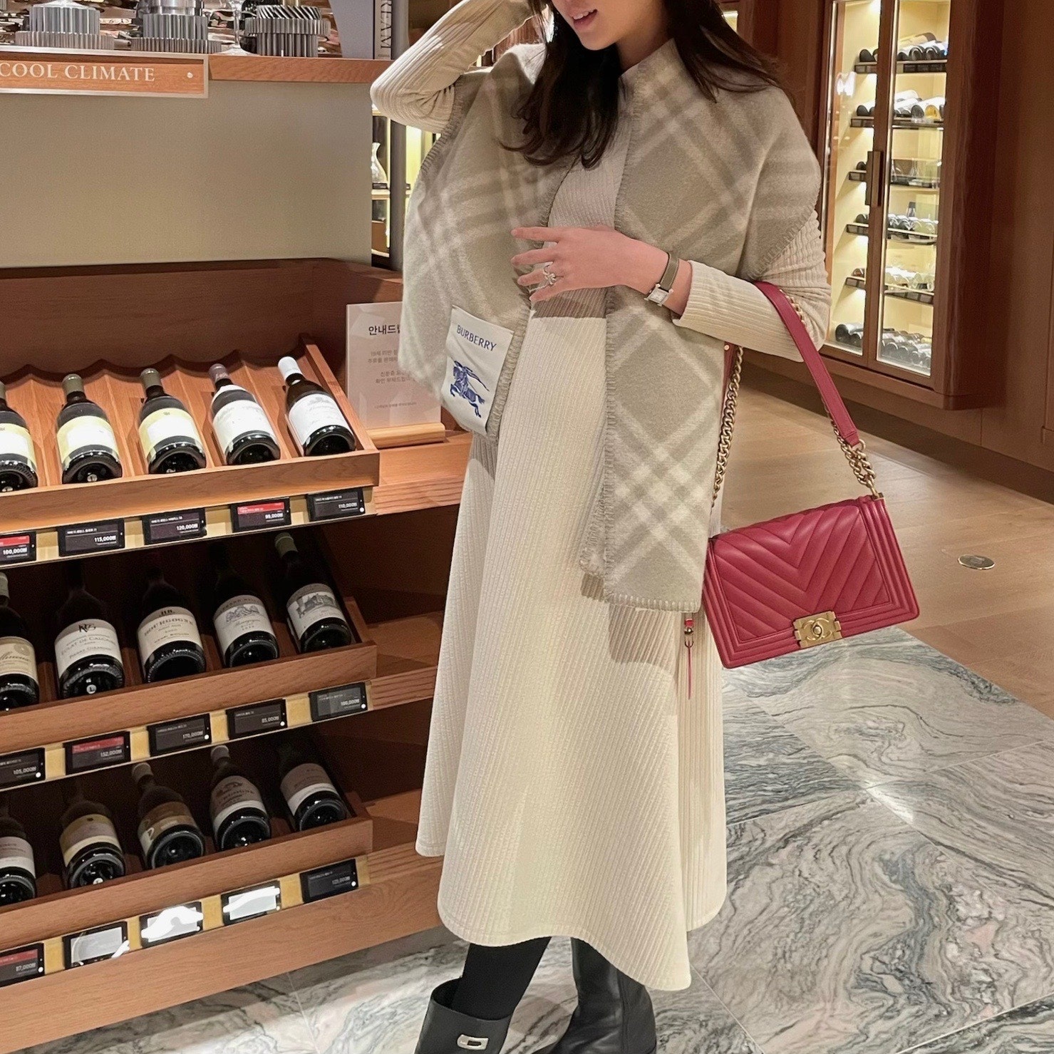 포멜라토 매장에 방문할 때는 버버리 캐시미어 머플러 둘러주고, 샤넬 보이백으로 포인트 줬어요.
