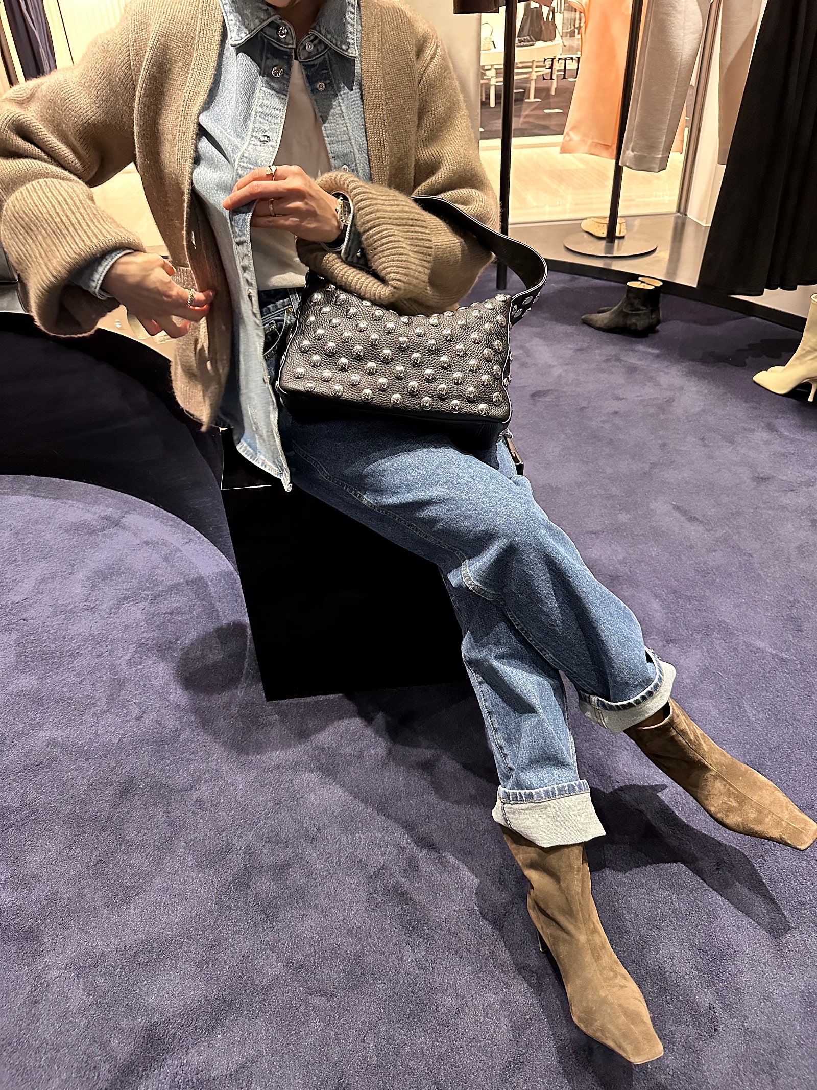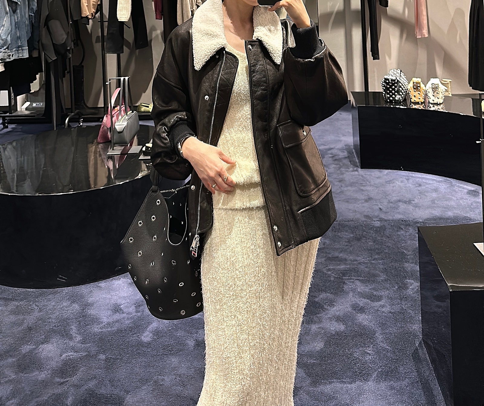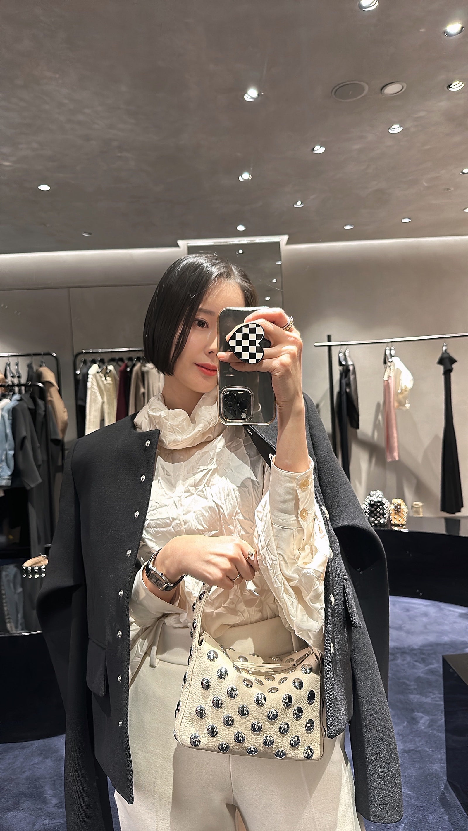 같이 코디한 엘리나 백(Elena bag)은 스터드 장식이 들어가 있어 전체적인 룩에 쿨한 무드로 마무리가 되더라구요.