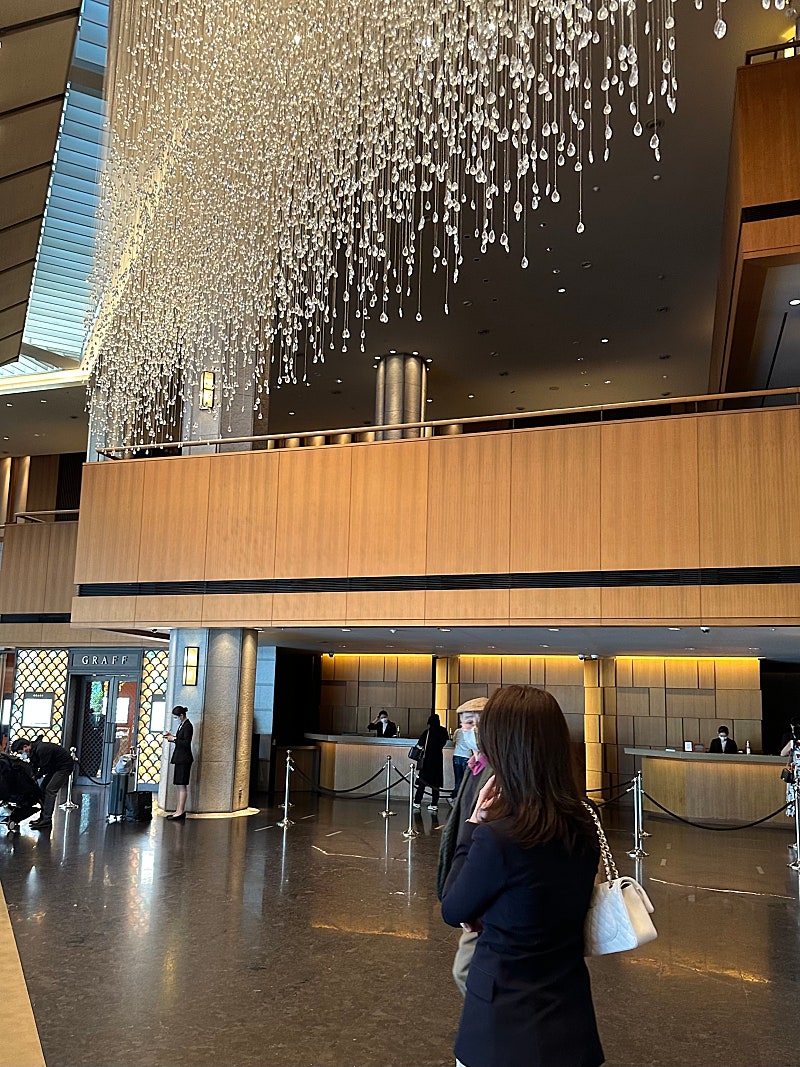 공간 : 신라호텔 1층 ‘더 라이브러리’ 내부, 우드톤 + 클래식 조명