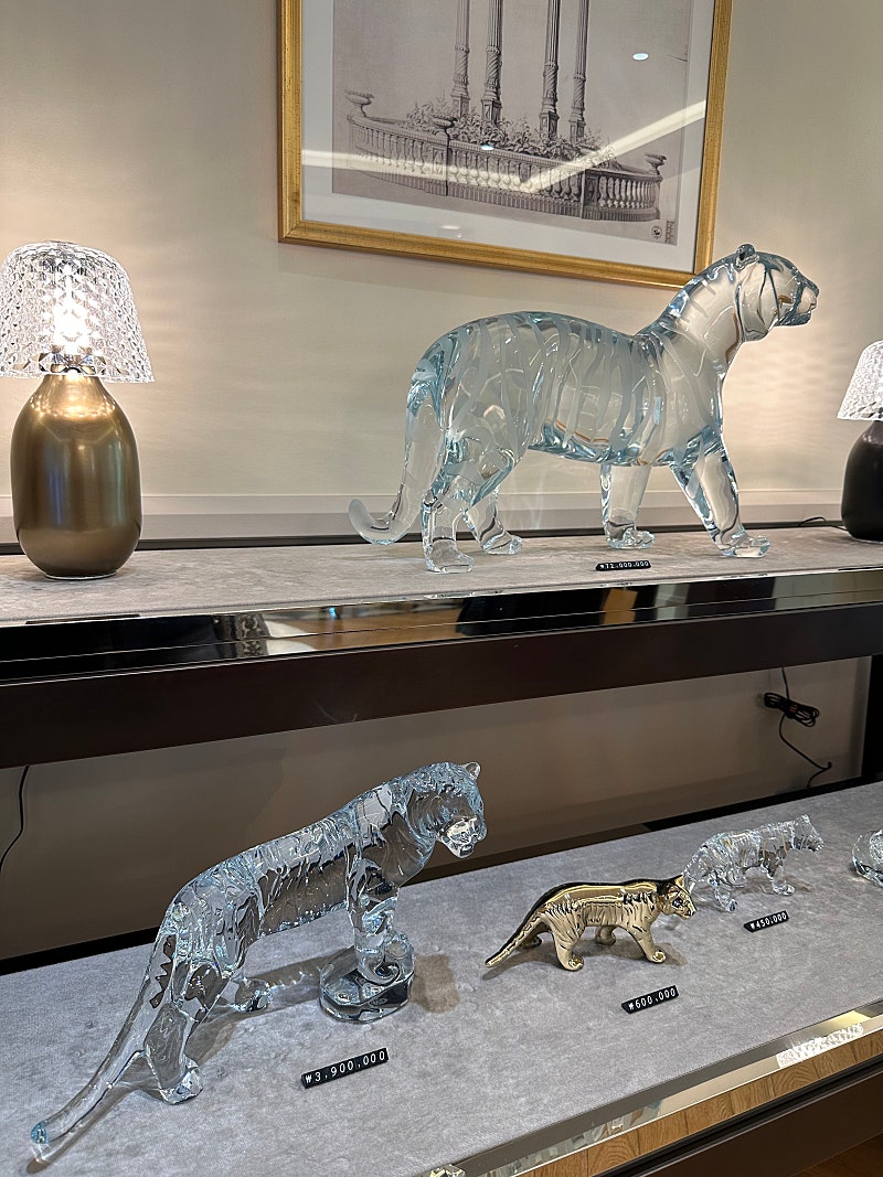 1층에서는 바카라의 눈부신 크리스탈 조형물들과 식기류들을 구경하고 구매할 수 있어요.