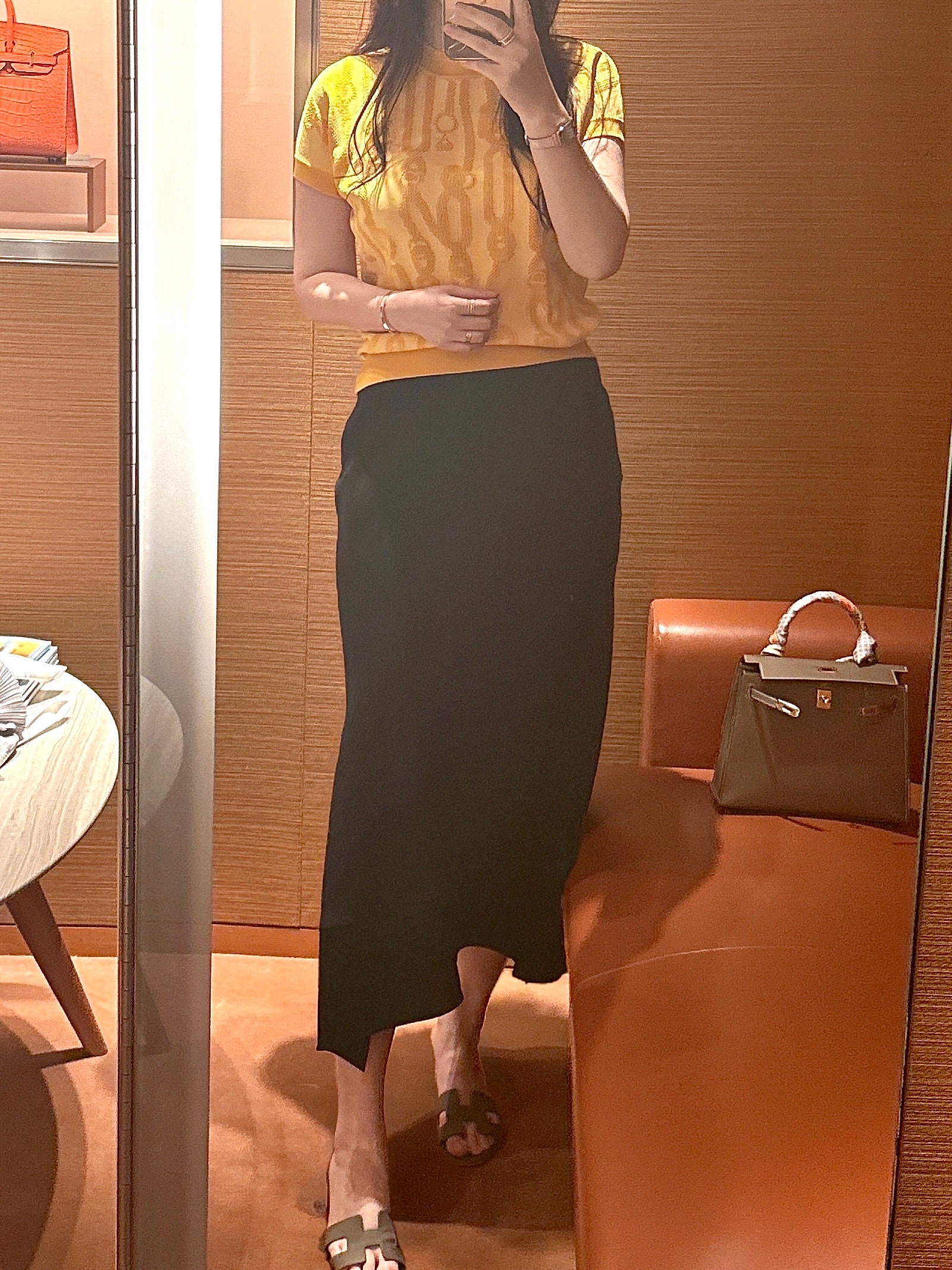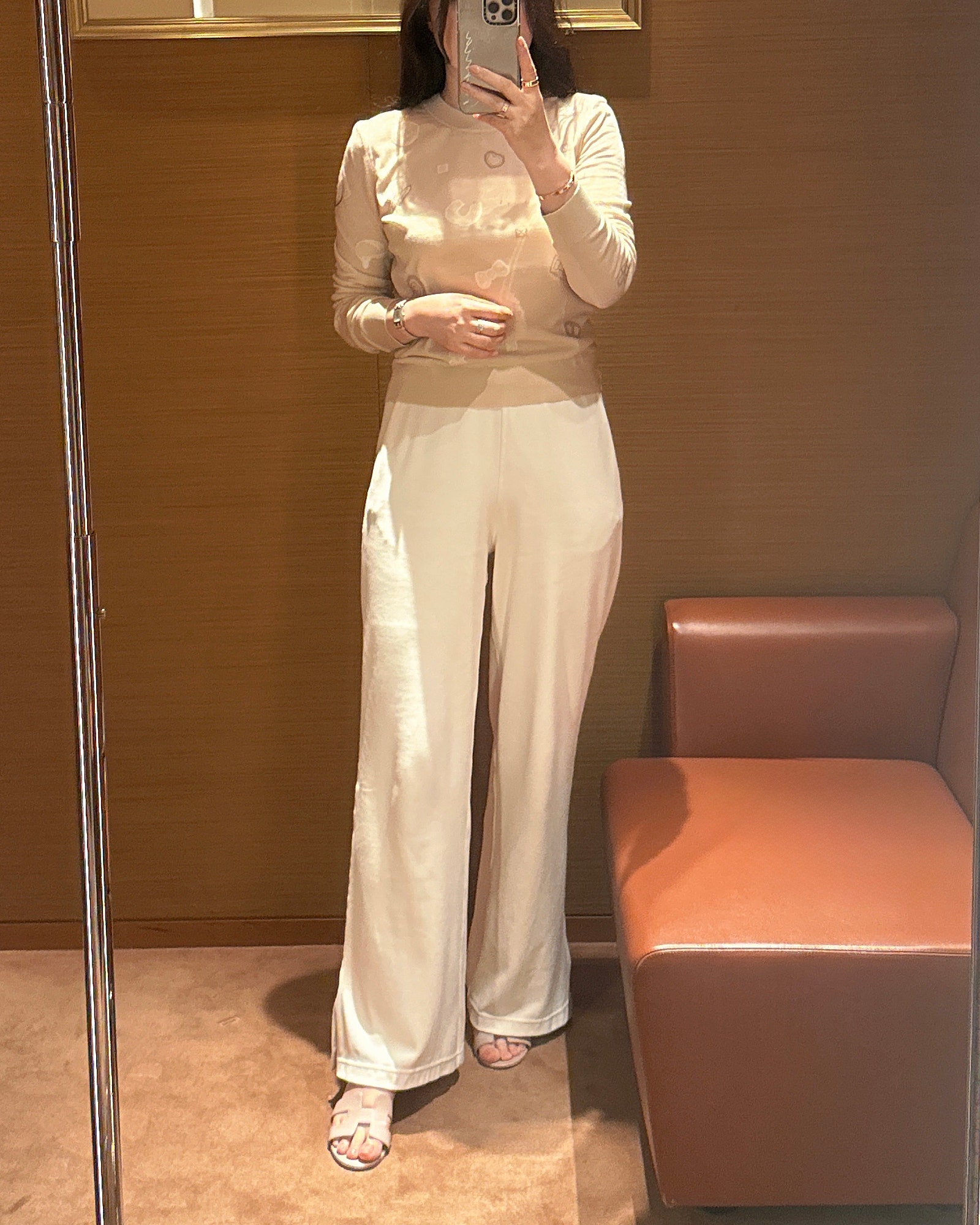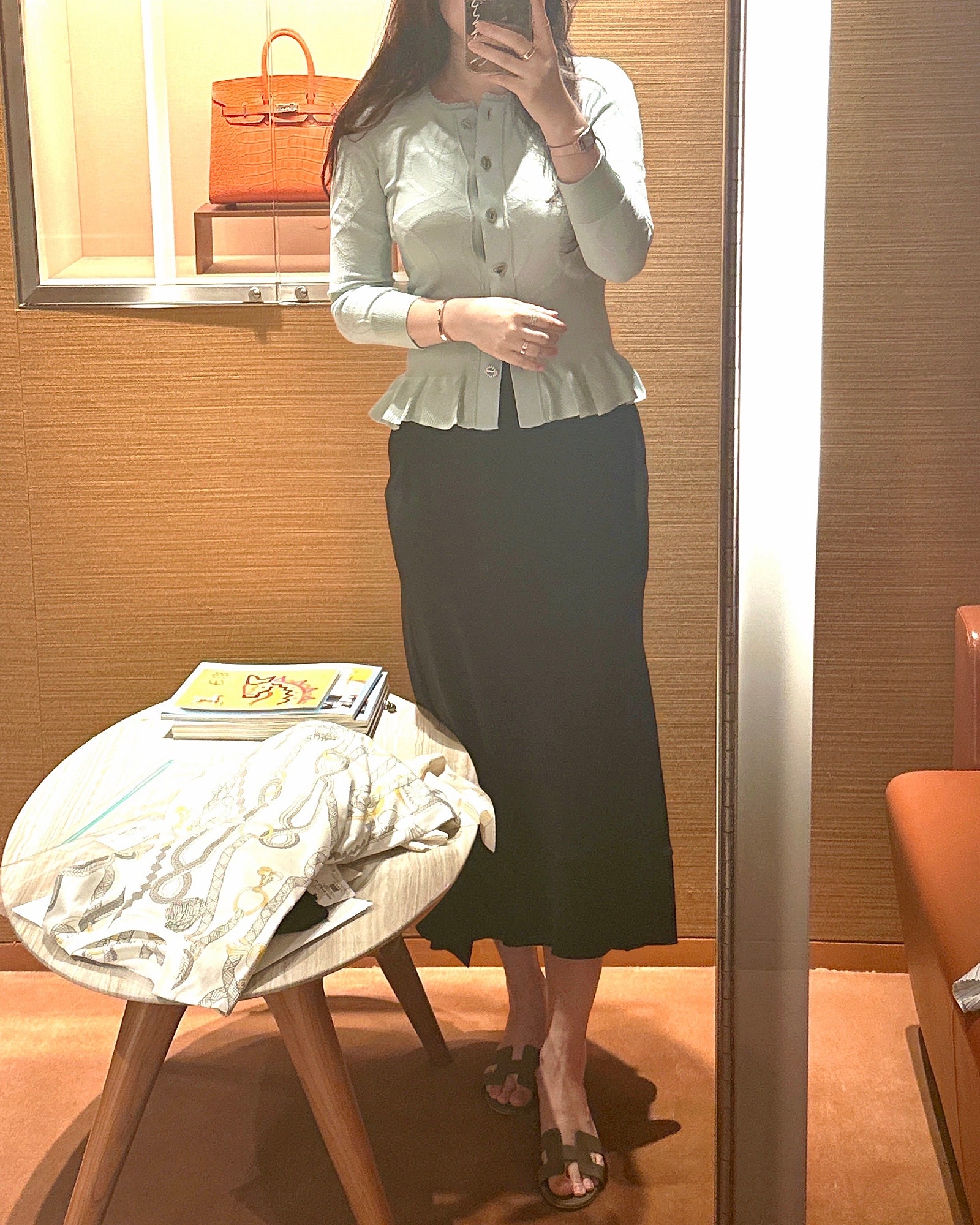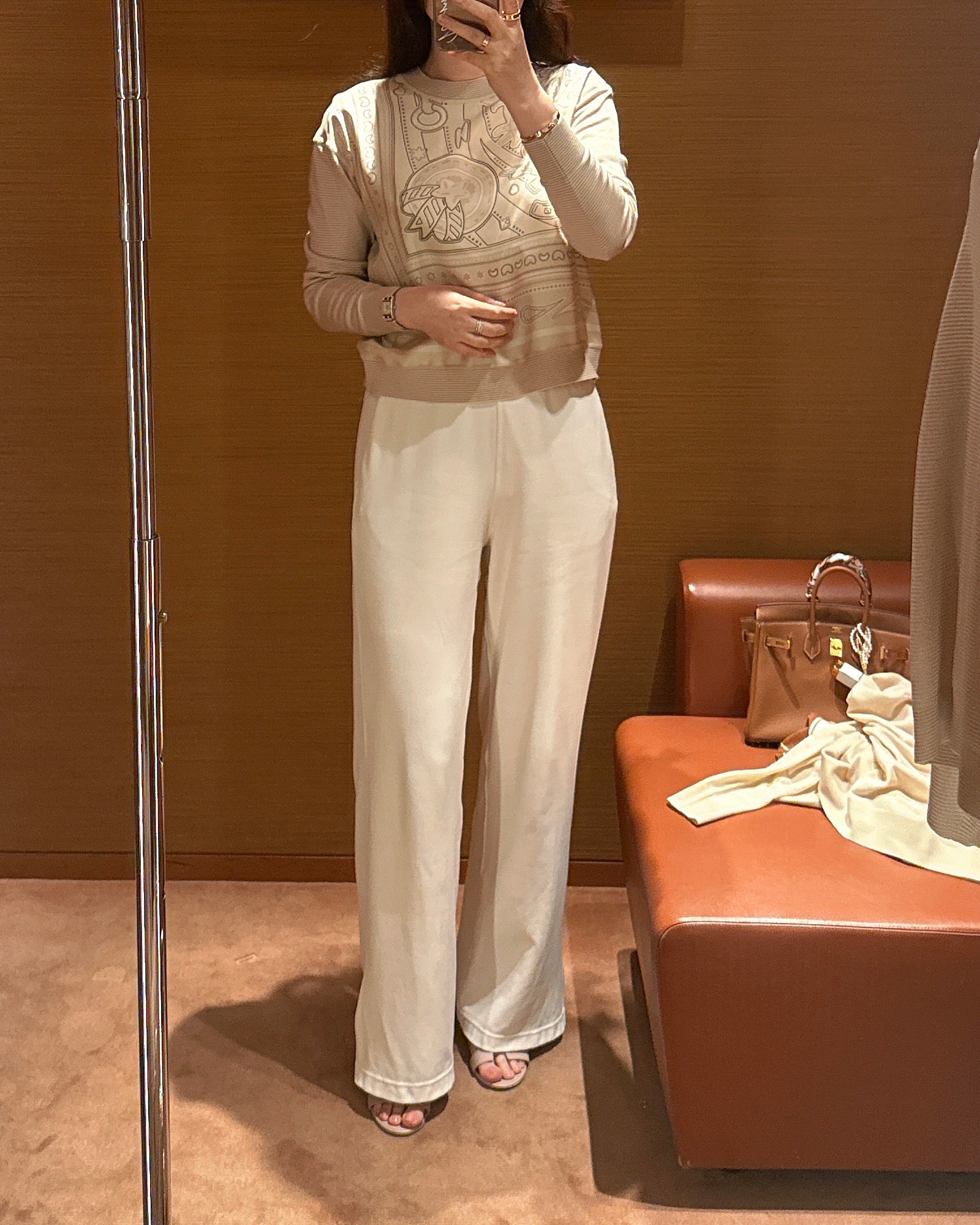 에르메스 매장에서 입어본 다양한 제품의 착샷입니다.