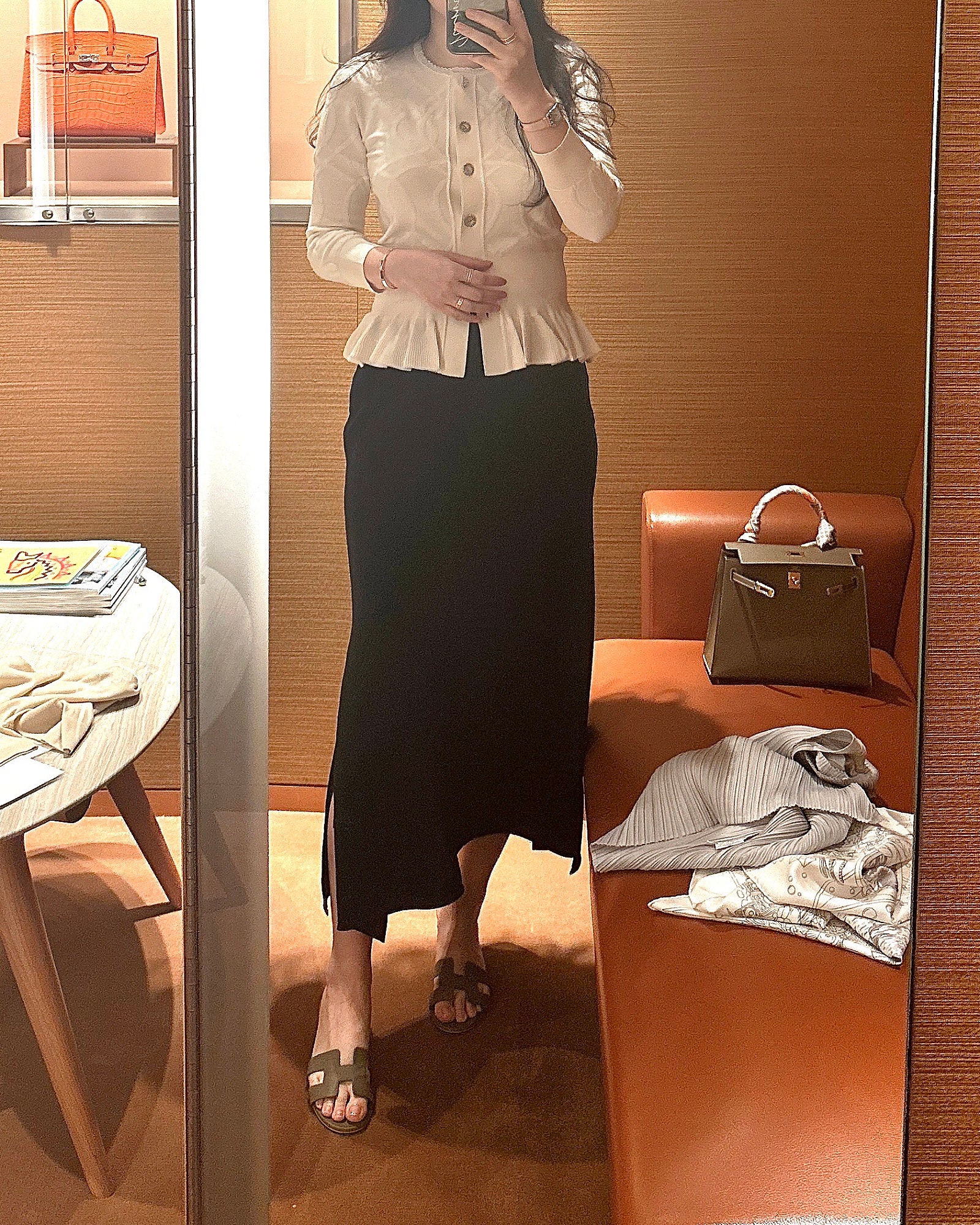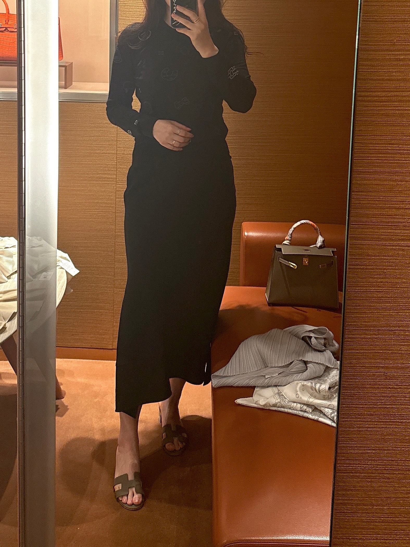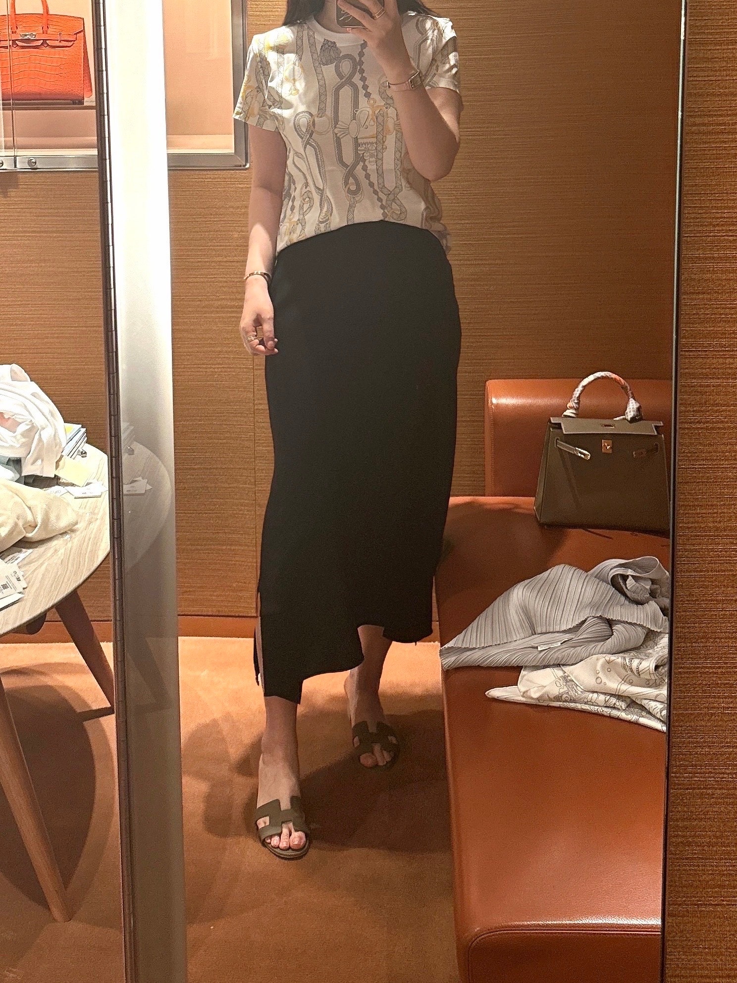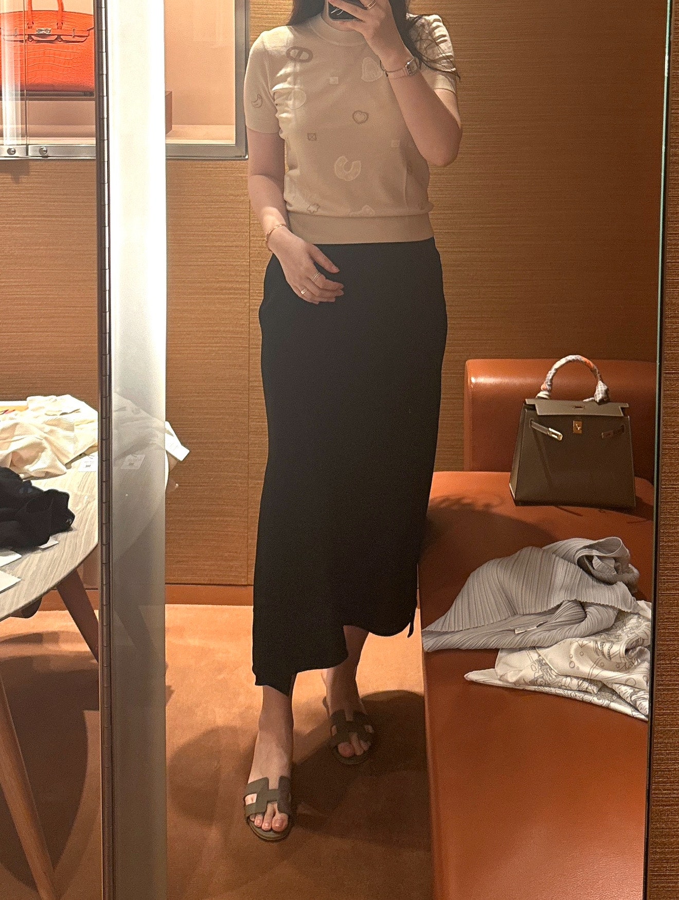 에르메스 매장에서 입어본 다양한 제품의 착샷입니다.