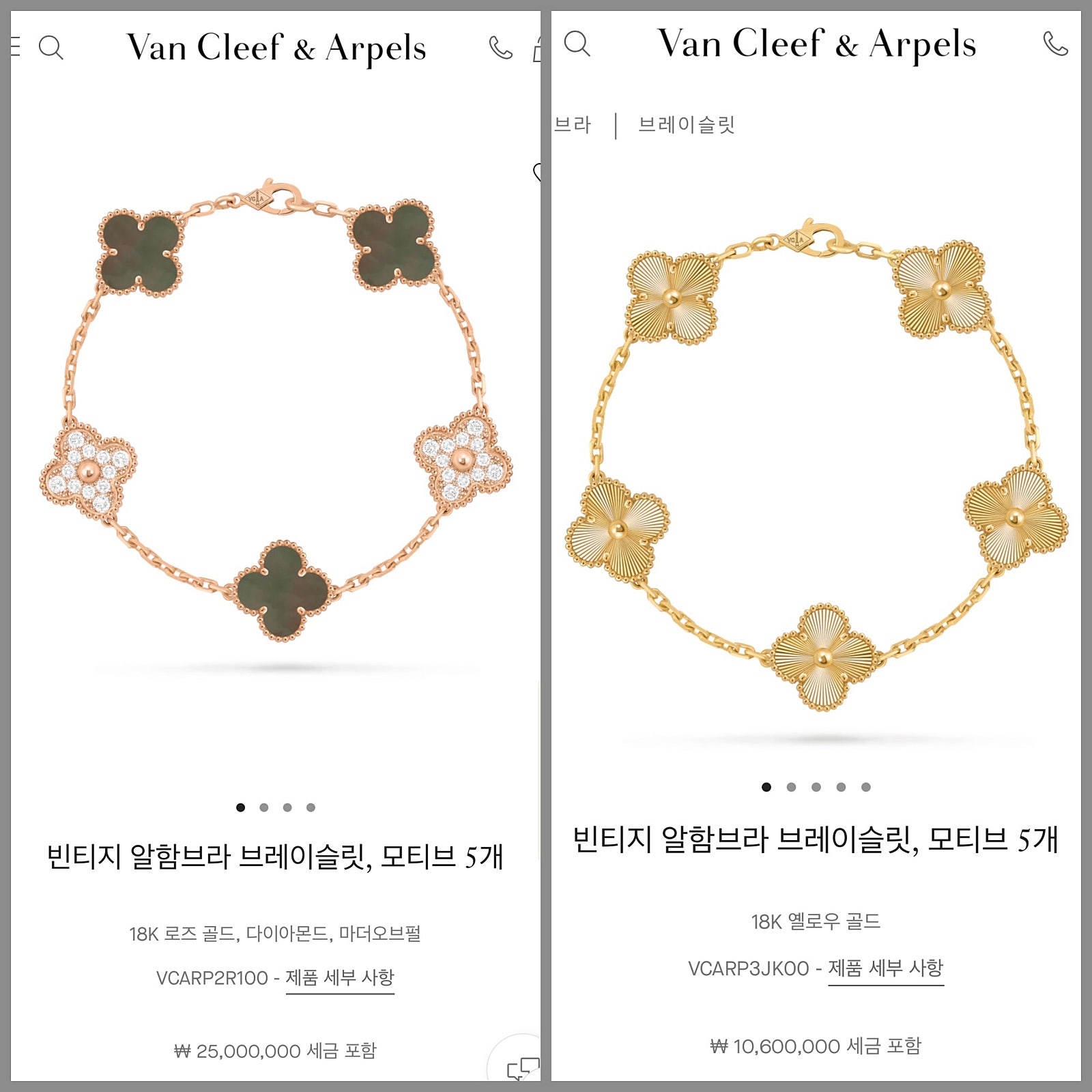 빈티지 알함브라 팔찌 비교 사진과 정보
