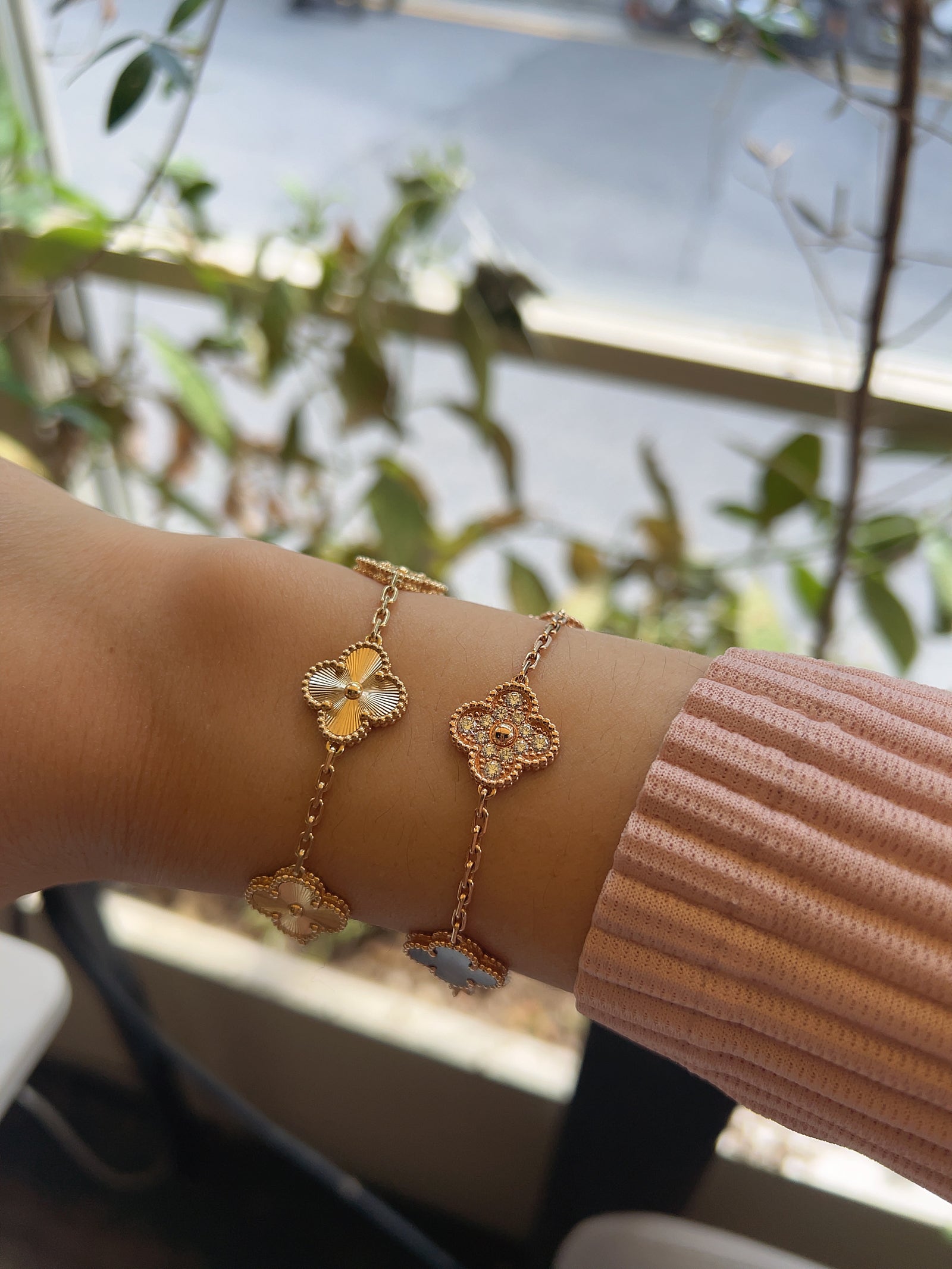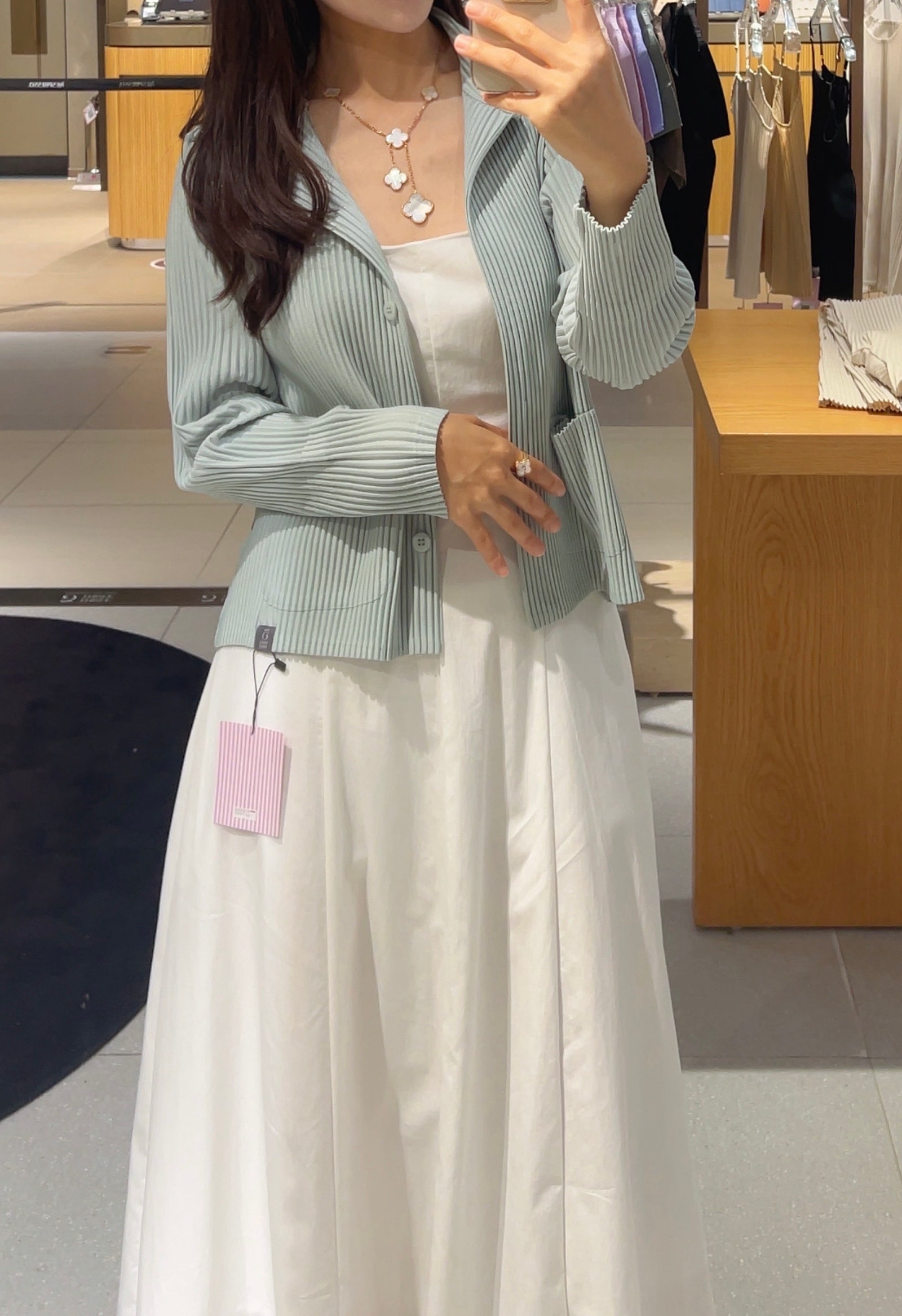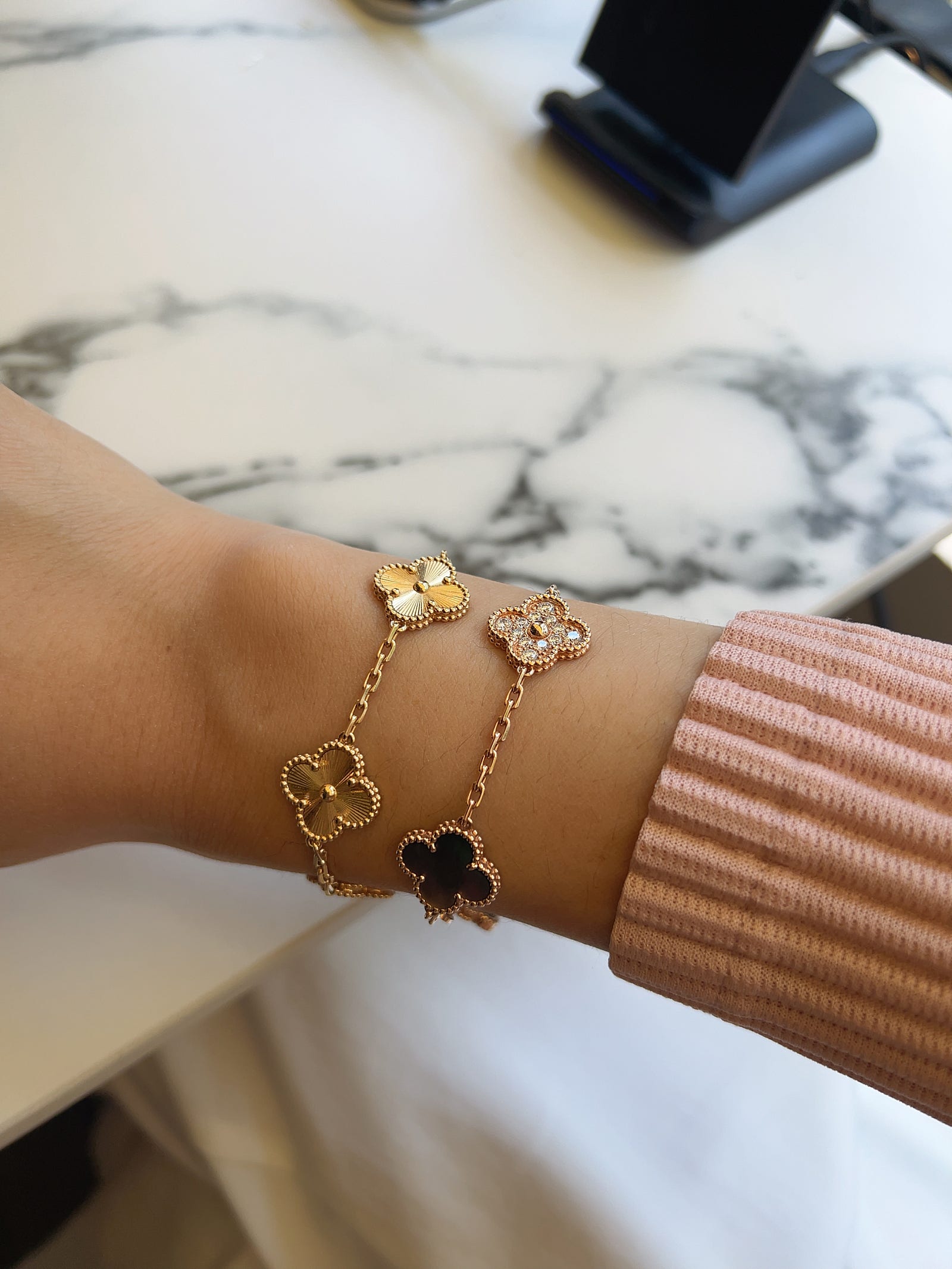 Van Cleef & Arpels Magic Alhambra 6-Motif Necklace and Bracelet: A Color Comparison (feat. my own pleated cardigan OOTD - yes, I bought it!)