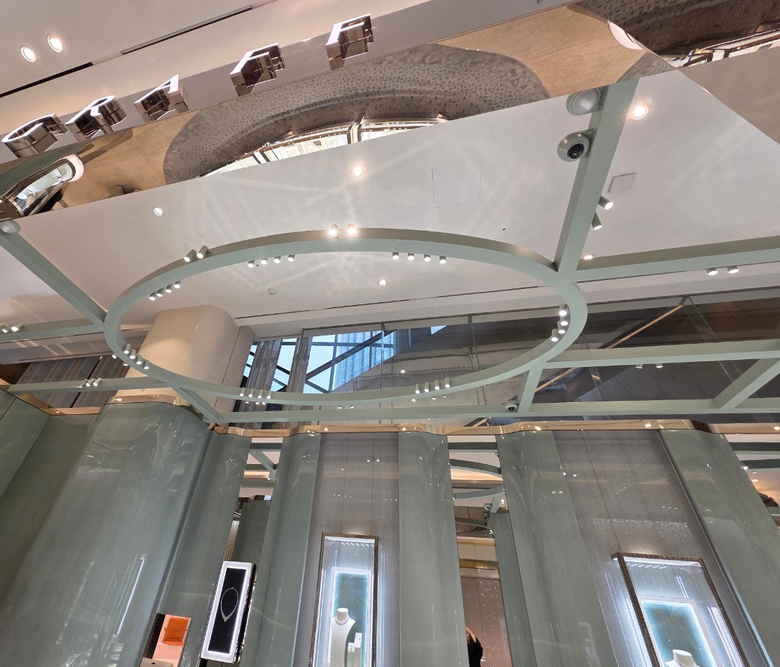 이 곡선을 따라 걸으면 시선이 자연스럽게 피스에서 피스로 흘러가는데, '다이아몬드 파셋 위에서 빛이 흐르듯, 공간 안에서도 시선이 끊기지 않도록 설계된 것이 아닐까?' 하며 브랜드의 의도를 추론해 보는 것도 또 다른 즐거움이었어요.