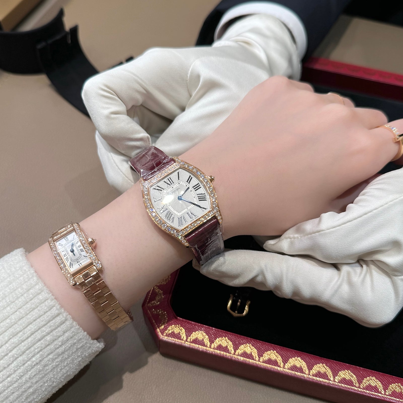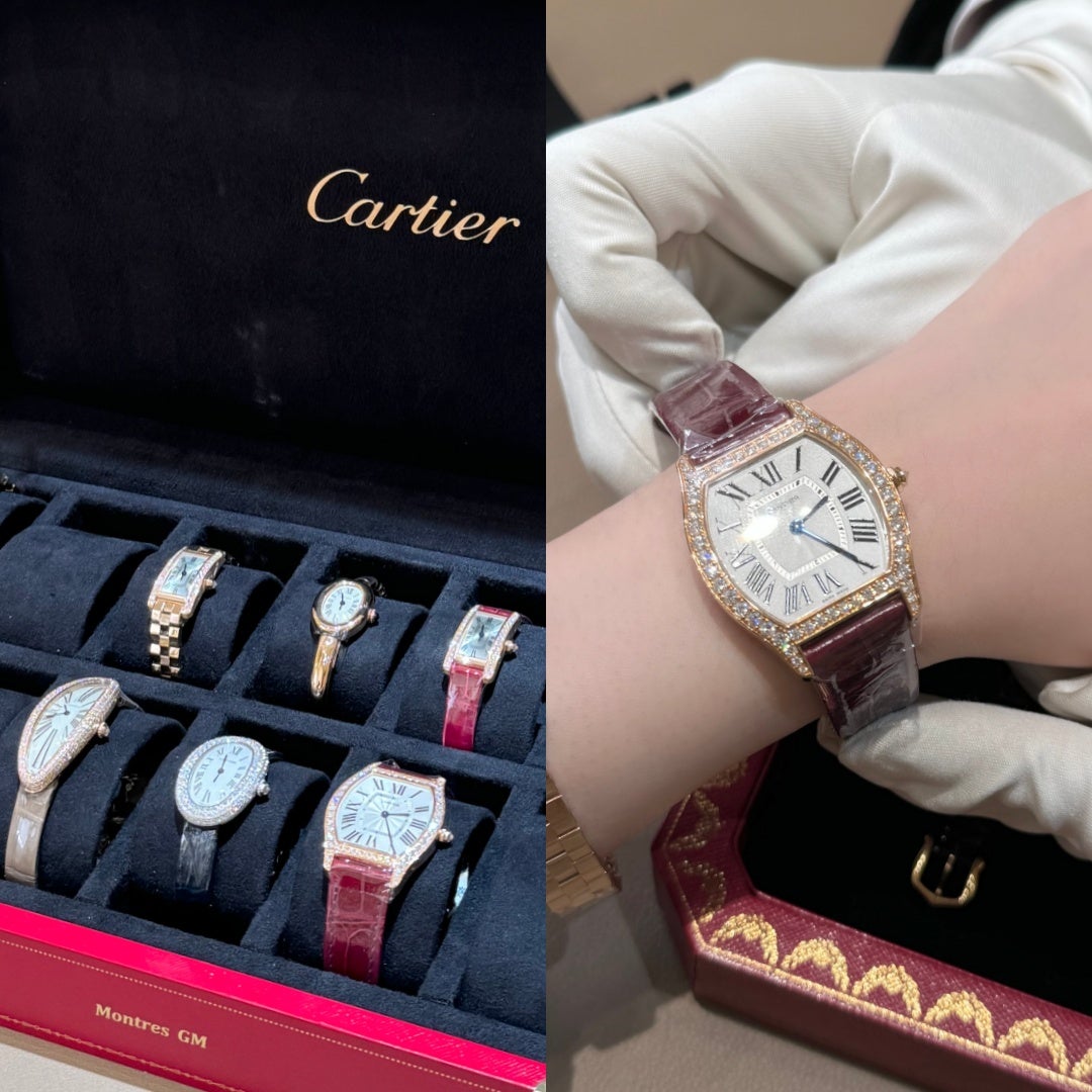 ​여성 라인으로는 팬더, 탱크 아메리칸, 탱크 프랑세즈, 베누아 알롱제, 프리베가 준비되어 있었고, 남성 라인으로는 팬더와 산토스 워치가 준비되어 있었어요.