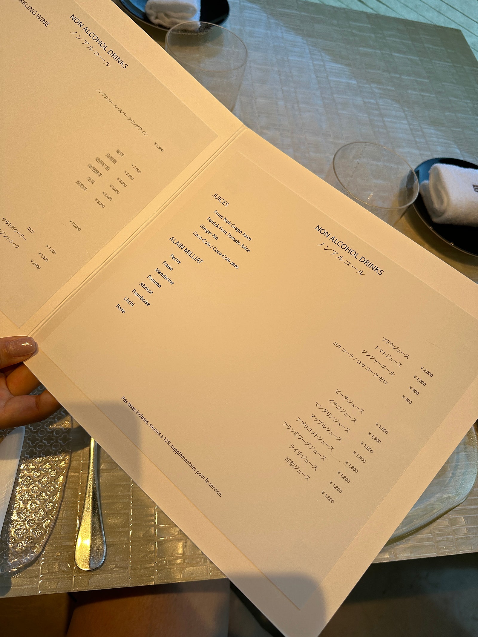 저희는 13,000엔 코스를 선택하고 ‘코코’라는 시그니처 논알콜 칵테일을 시켰어요. 맛있었습니다.
