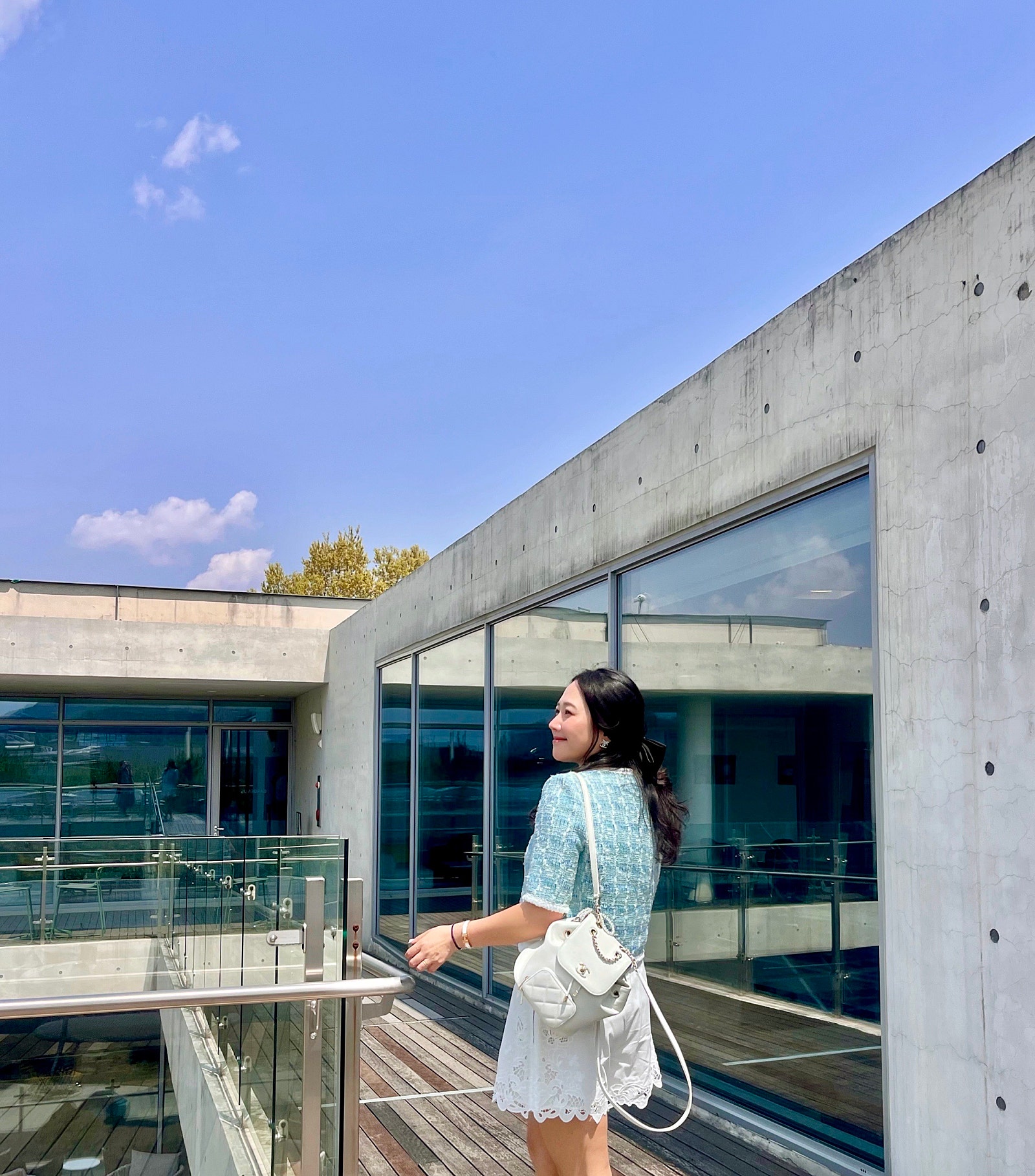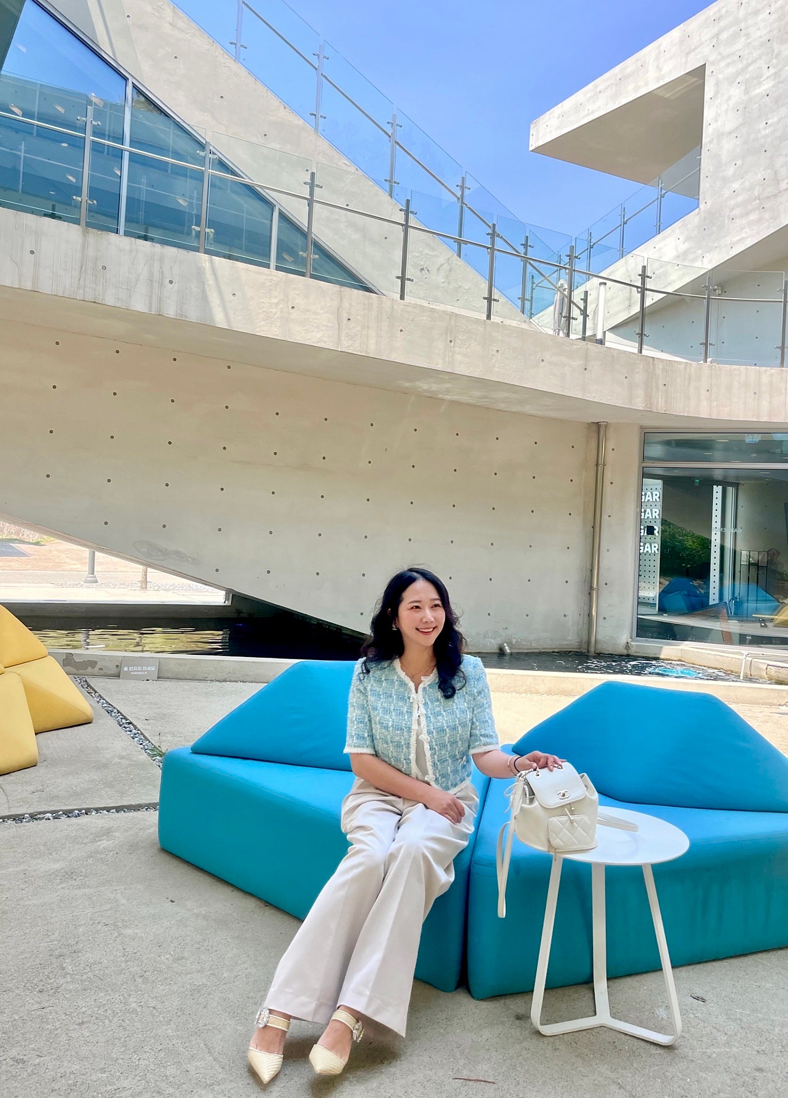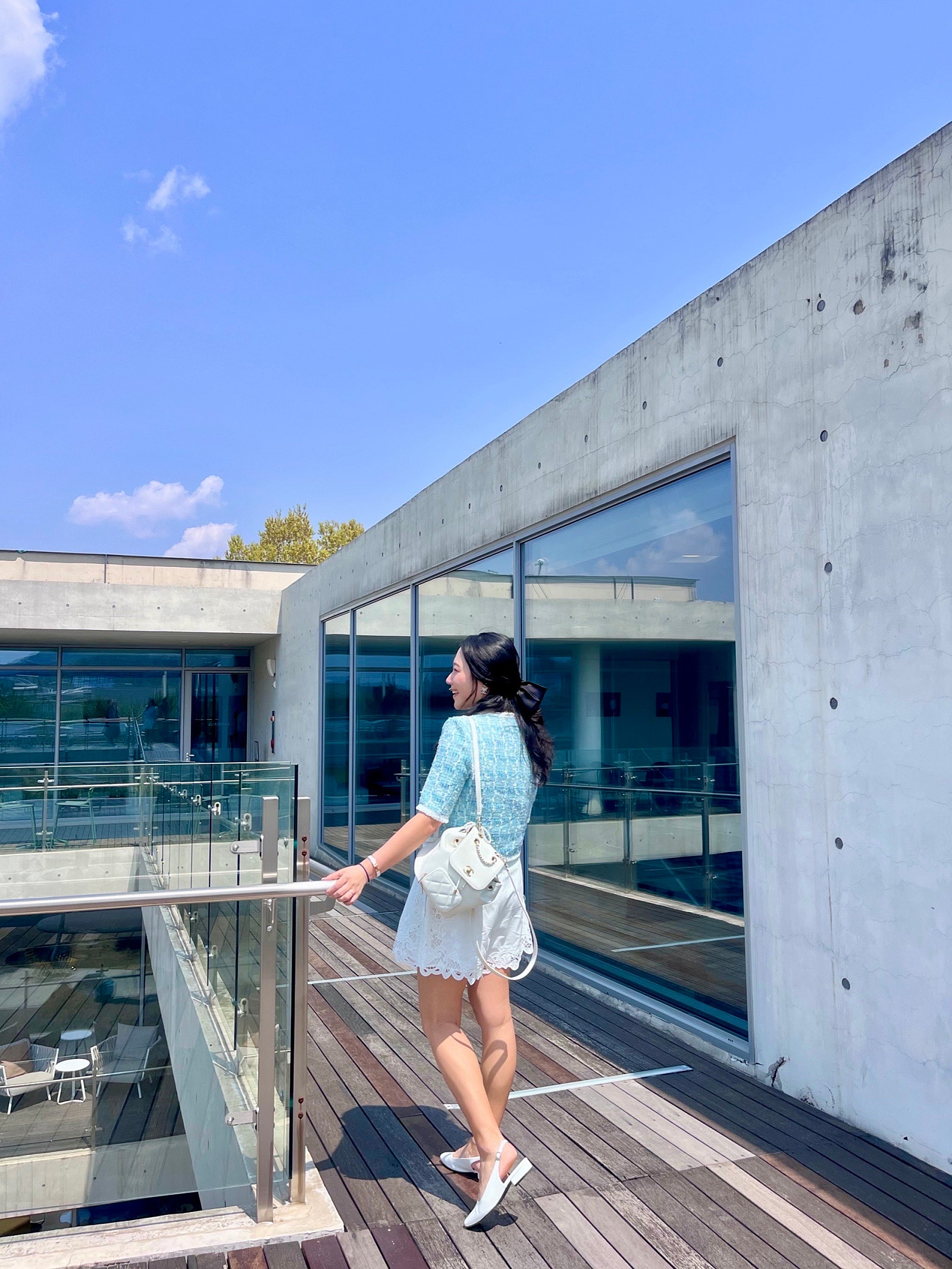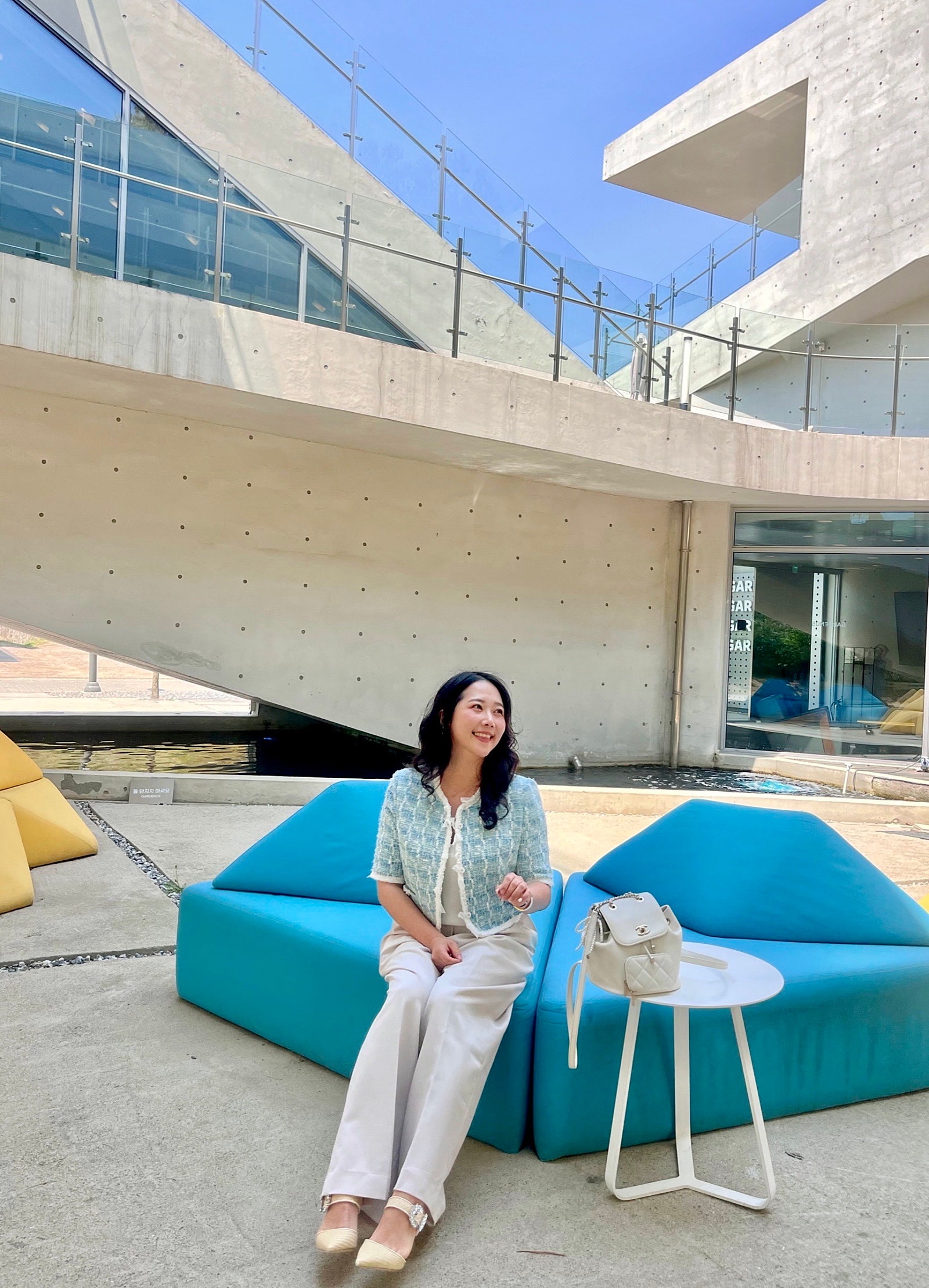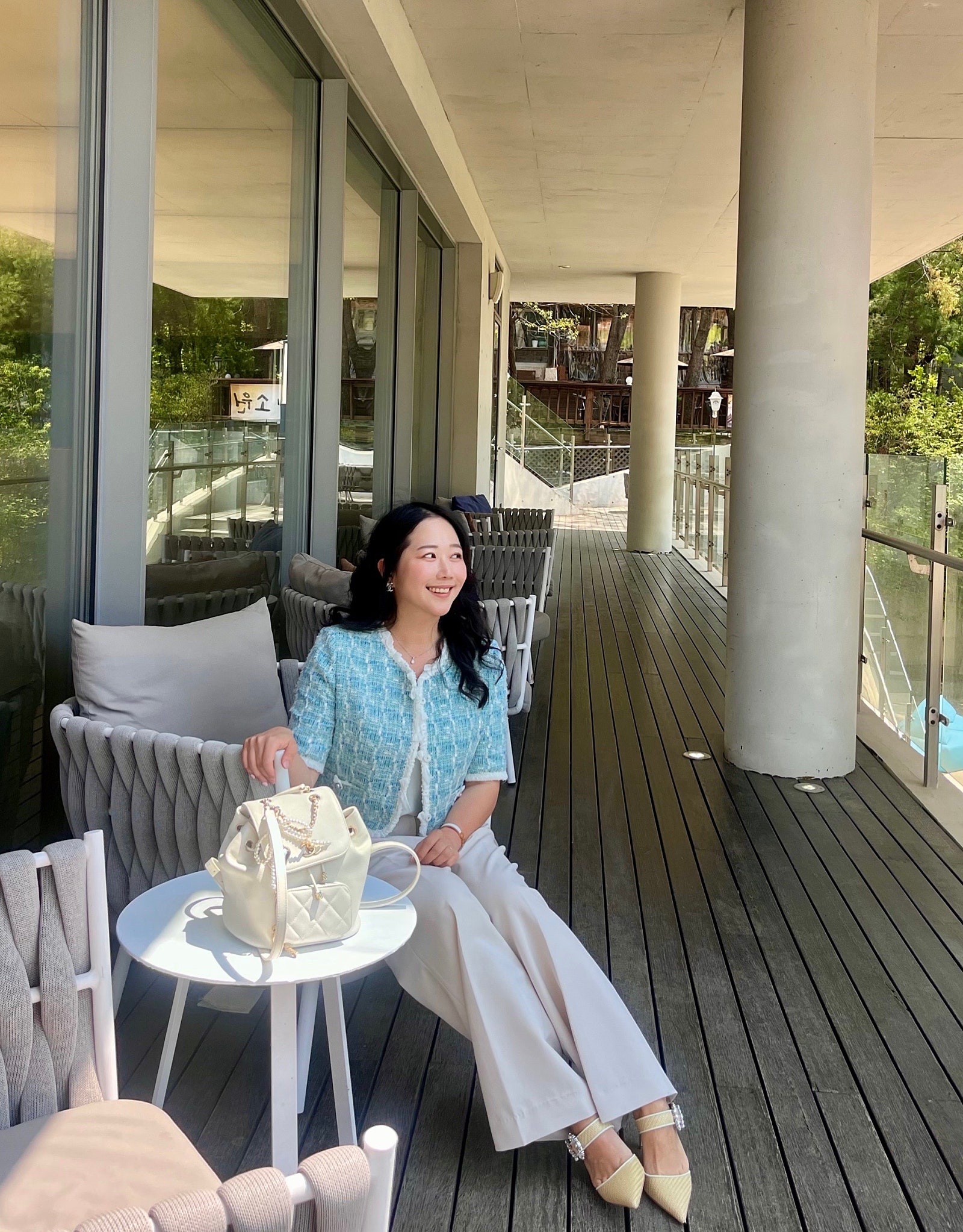 얼마 전에 인스파이어 리조트 다녀왔는데, 그때 미리 출시되었다면 찰떡이었을 마인 펄 & 리본 트리밍 트위드 자켓🩵🤍
